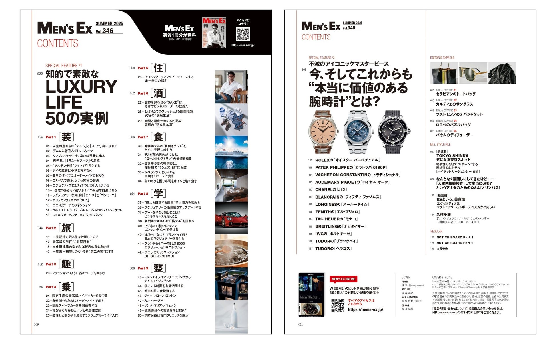 『MEN'S EX SUMMER 2025』6月18日発売。新編集長によるリブランディング第一号は、現代の知的で素敵なラグジュアリーライフの実例を提案!