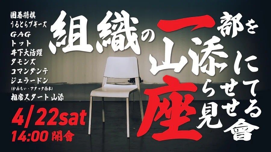 ◆出演者:囲碁将棋、うるとらブギーズ、GAG、トット、タモンズ、コマンダンテ、ジェラードン(かみちぃ・アタック西本)、相席スタート山添