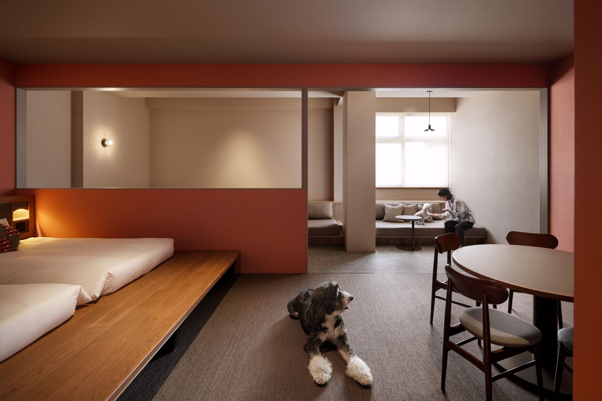 愛犬との旅に最適な街、横浜。公園や海辺など、散歩に適したスポットが多いこの地で、OMO7横浜は愛犬との宿泊を歓迎します。客室タイプは、「ドッグフレンドリーダブルルーム」・「ドッグフレンドリーデラックスルーム」・「ドッグフレンドリースイート」の全3タイプを用意。中でも、ドッグフレンドリースイートは、6名定員に加え、小~大型犬2頭まで一緒に過ごせるため、家族3世代やグループ旅行など多様な旅のニーズに応えられます。また、屋外ドッグランと屋内ドッグラウンジの両方を備えた「OMOドッグガーデン」では、思いきり遊んだり、飲食を楽しみながらリラックスしたりと、愛犬と心ゆくまで思い思いの時間を過ごせます。