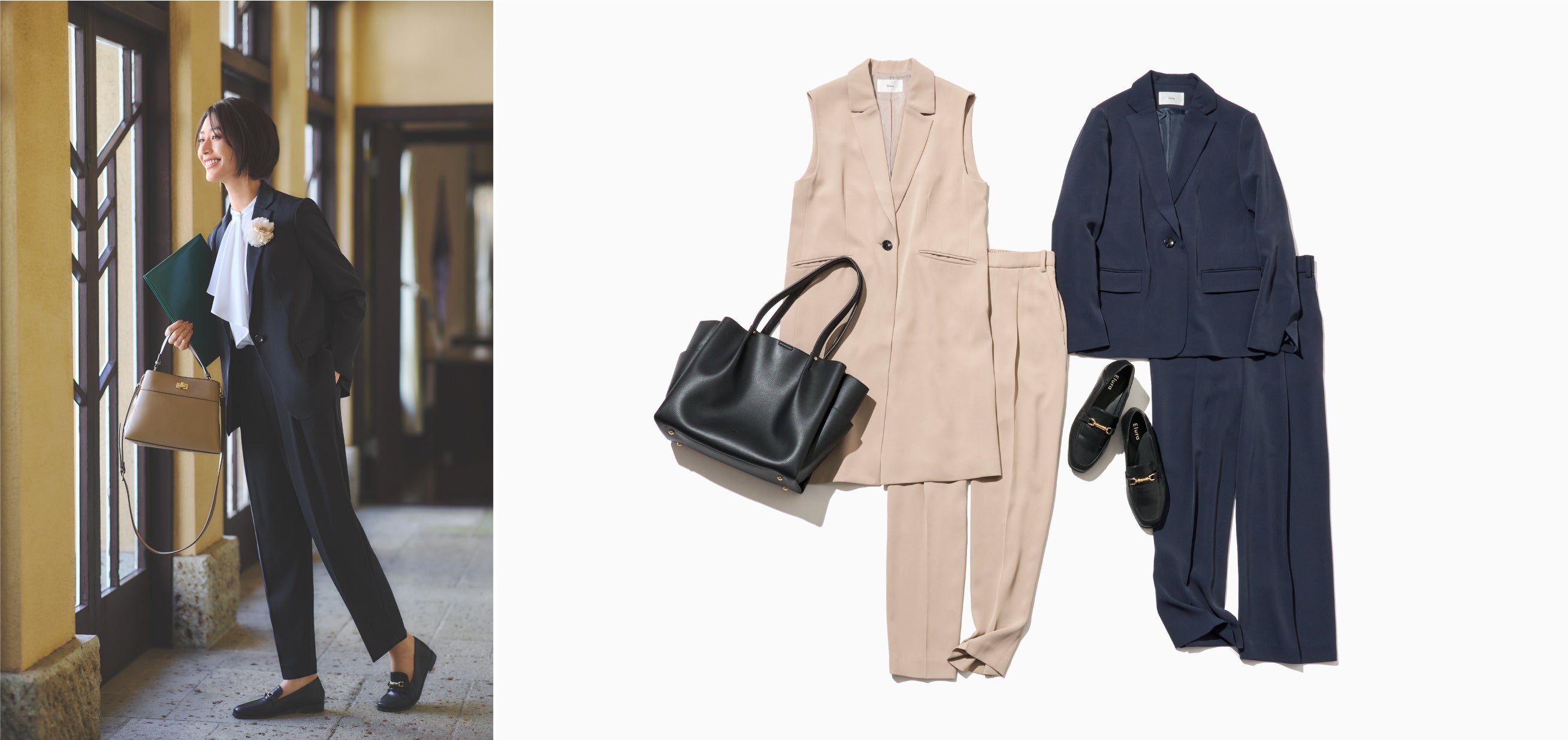 入卒式などのセレモニーに加え、お仕事シーンで使えるシリーズ。知的な印象のジャケットスタイルや、少しトレンドも意識したジレ・ワイドパンツなども揃います。お仕事での活用も想定し、セレモニーらしい端正な佇まいながら、お手入れしやすくシワになりにくい素材を採用。長い会議の日や大事なプレゼンテーションにもピッタリです。また、入卒式以外にも授業参観や面談など学校行事にもおすすめです。