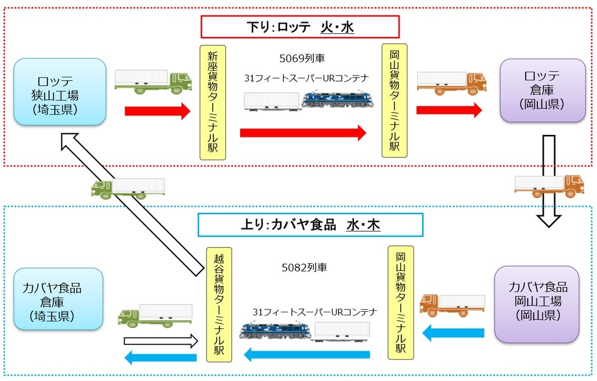 ~ロッテ狭山工場から岡山へ、カバヤ食品岡山工場から埼玉への鉄道による往復輸送~