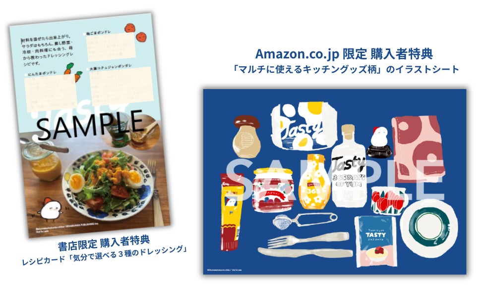 対象店舗で、書籍『Tasty! 日刊ごちそう通信』をご購入いただいた方に、オリジナルレシピカード(はがきサイズ 100mm × 148mm)をプレゼントします。※対象店リストは下記よりご確認ください。