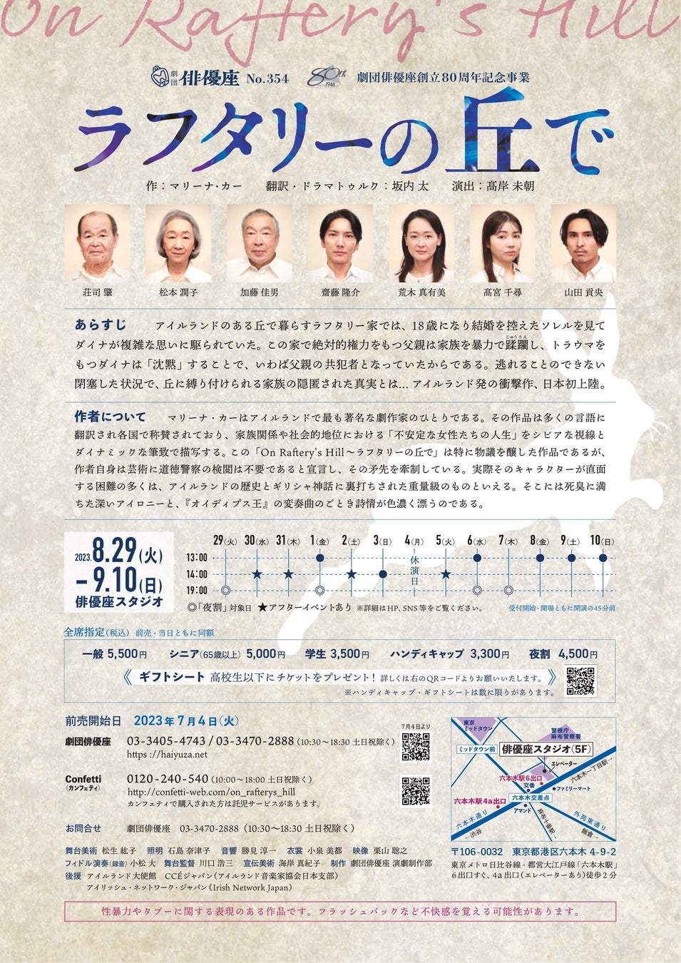アイルランドで最も著名な劇作家・マリーナ・カーによる衝撃作『ラフタリーの丘で』を劇団俳優座にて本邦初演 カンフェティでチケット発売