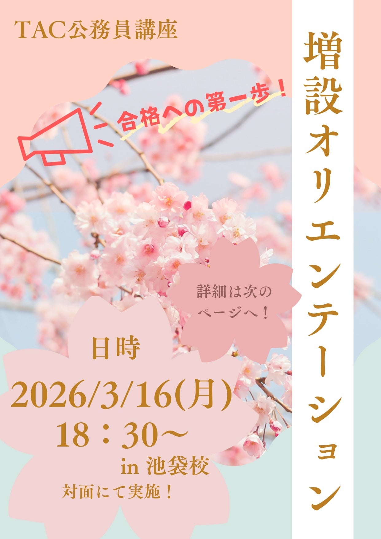 【TAC公務員】3/16(月)池袋校で開催!「(無料体験入学)増設オリエンテーション~公務員試験の学習方法・攻略法を伝授!~」