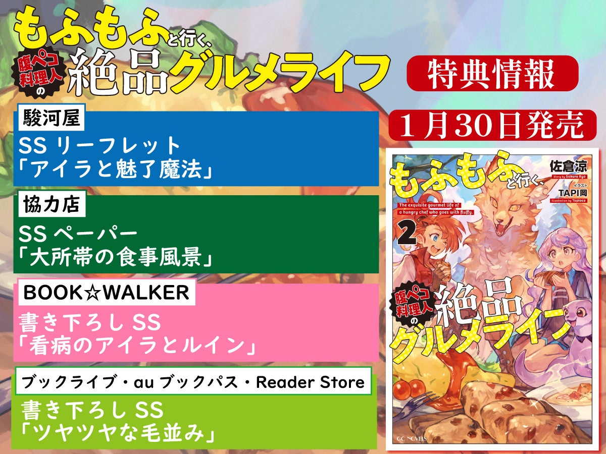 読むとお腹が空いてくる!GCノベルズ『もふもふと行く、腹ペコ料理人の絶品グルメライフ 2』1月30日発売!