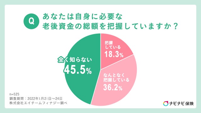 そこで、「自身に必要な老後資産の総額を把握していますか?」という質問をしたところ、「全く知らない」と回答した人が45.5%と、約半数を占める結果となりました。