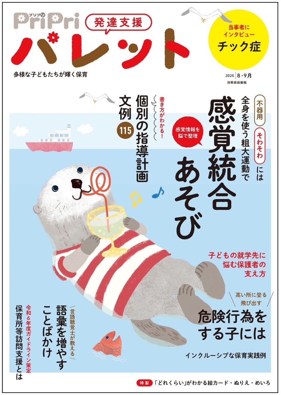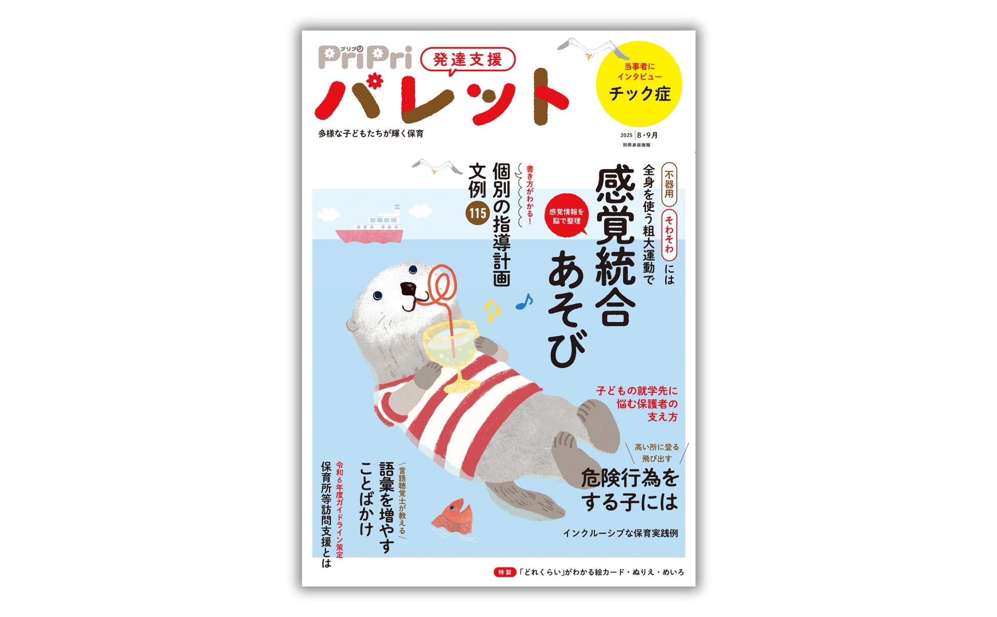 6月30日(月)発売の『PriPriパレット8・9月号』では、様々な感覚情報を脳が適切に処理する感覚統合を促すあそびを大特集。また、専門医に聞くチック症の子への関わり方や個別の指導計画の書き方がわかる文例集も!