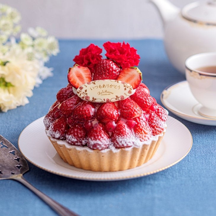 カーネーションといちごを贅沢に飾り、ブーケに見立てた母の日限定タルトです。