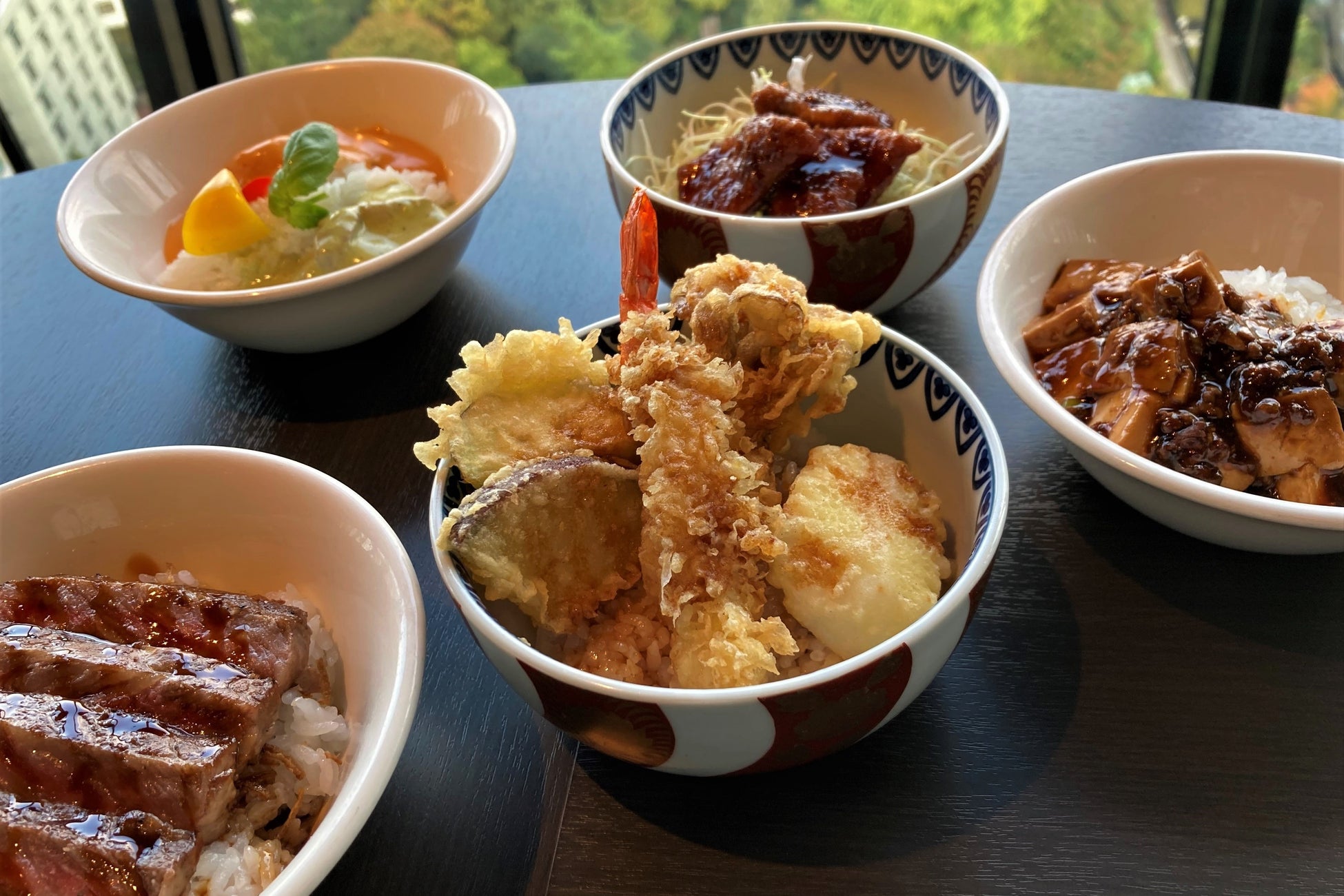 ホテルニューオータニ(東京)では、360°の圧倒的なパノラマ眺望とともに全50種類以上のお料理をお愉しみいただけるビュッフェ&バー「VIEW &DINING THE SKY」にて、今の時期「鳥取和牛」の焼きしゃぶと、秋田県産「サキホコレ」を使用した丼ぶりメニュー各種を提供いたします。