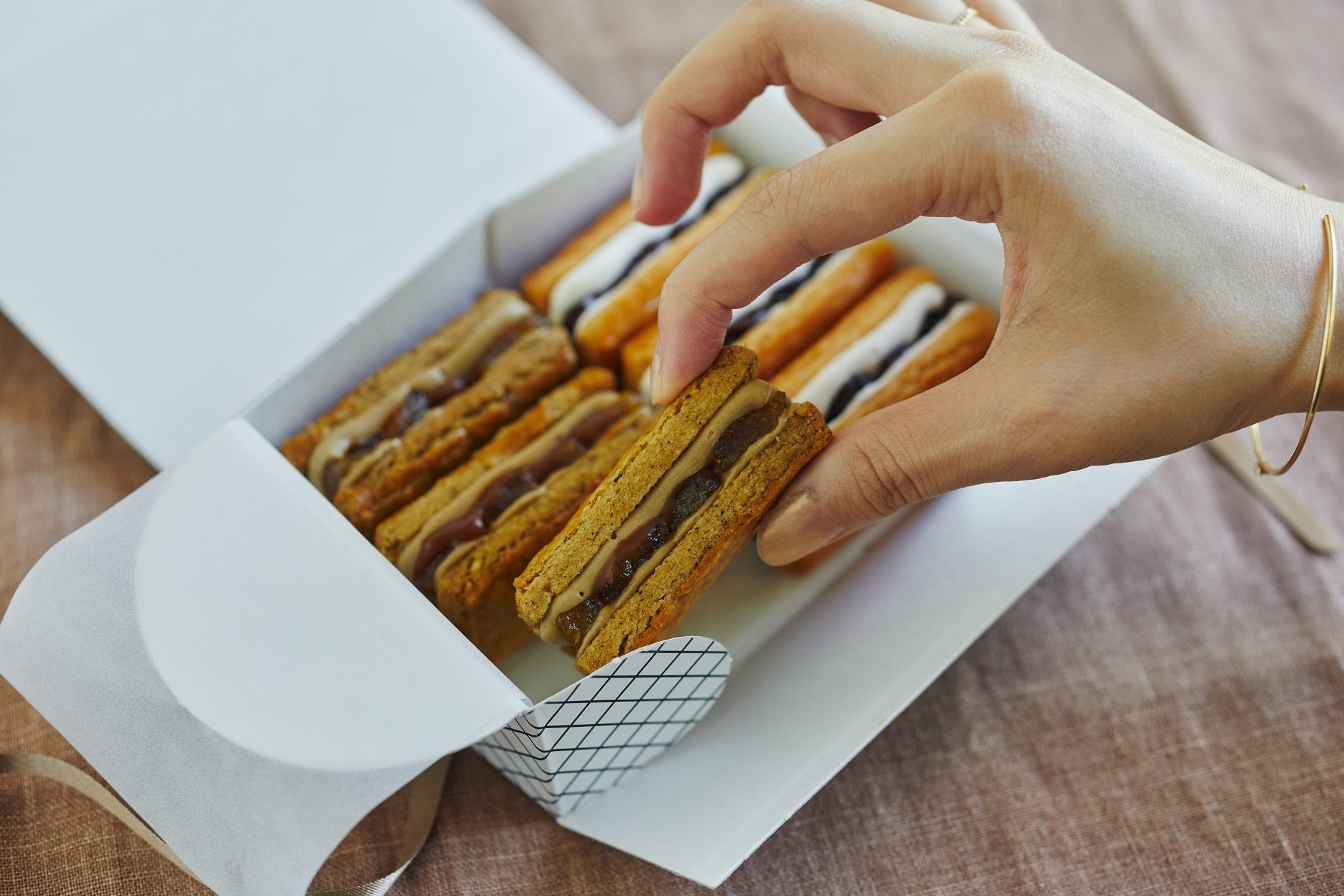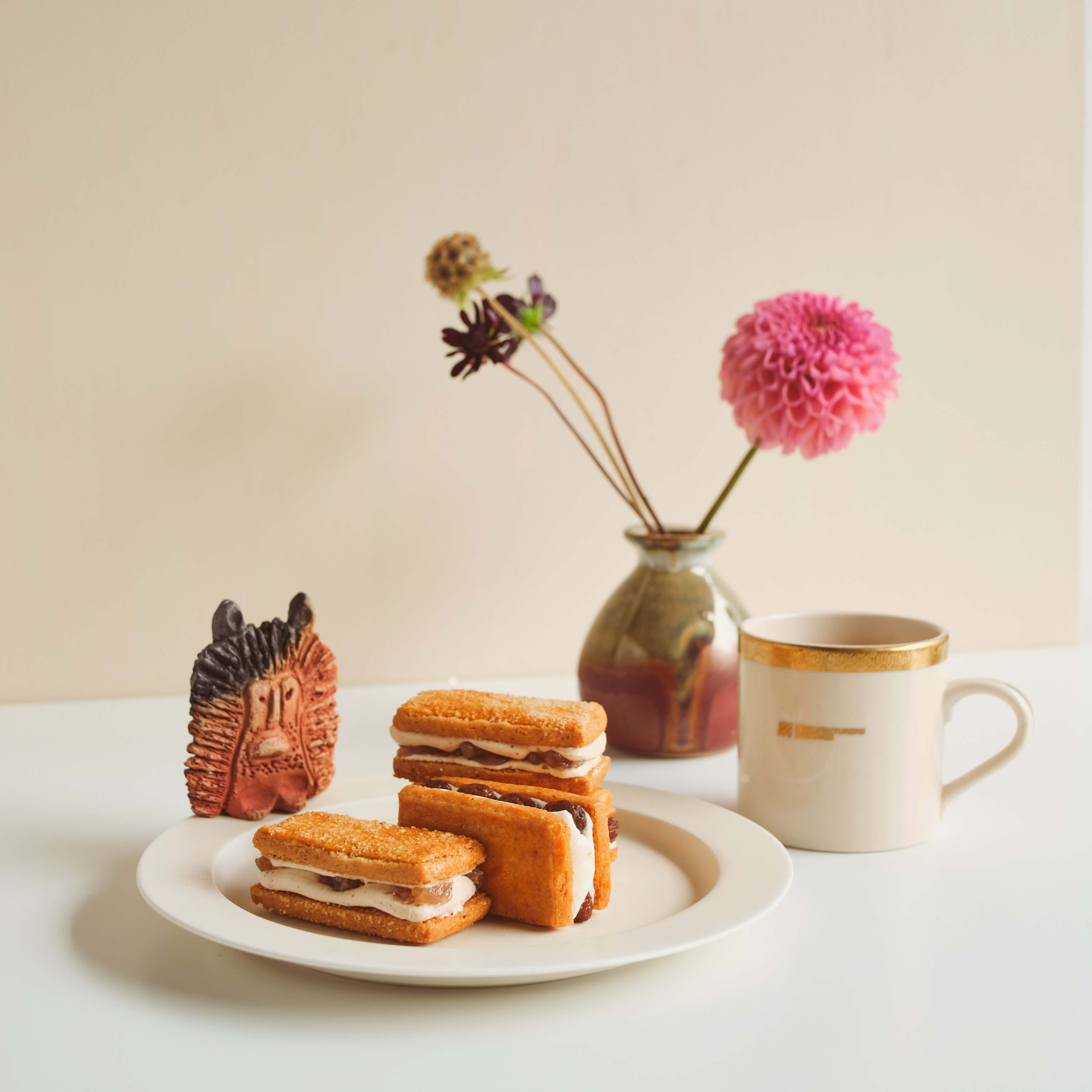 スパイスを効かせたサブレに香り高いクリームを挟んだ、ジューシーで特別なサンド菓子です。
