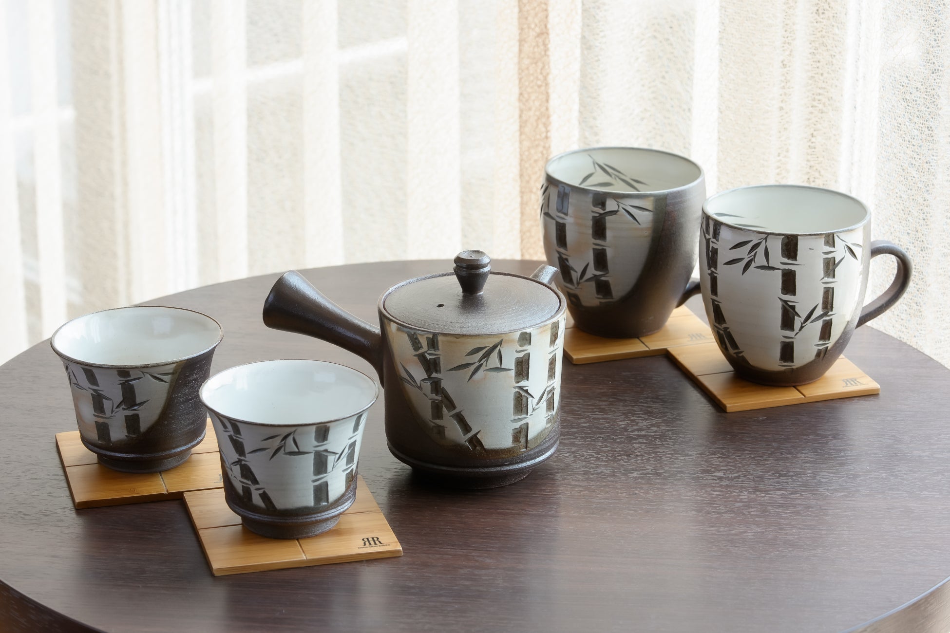 竹の部分は職人が一つ一つ手作業で彫っており個体差もお楽しみいただける茶器セットが、旅のくつろぎのひとときを演出します。