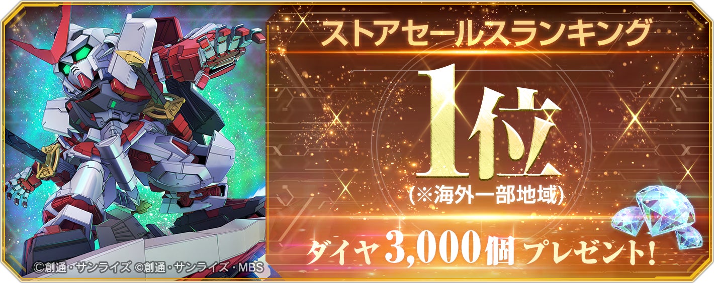『SDガンダム ジージェネレーション エターナル』海外一部地域でのストアセールスランキング1位達成を記念し、ダイヤ3,000個(ガシャ10回分)を全員へプレゼント!
