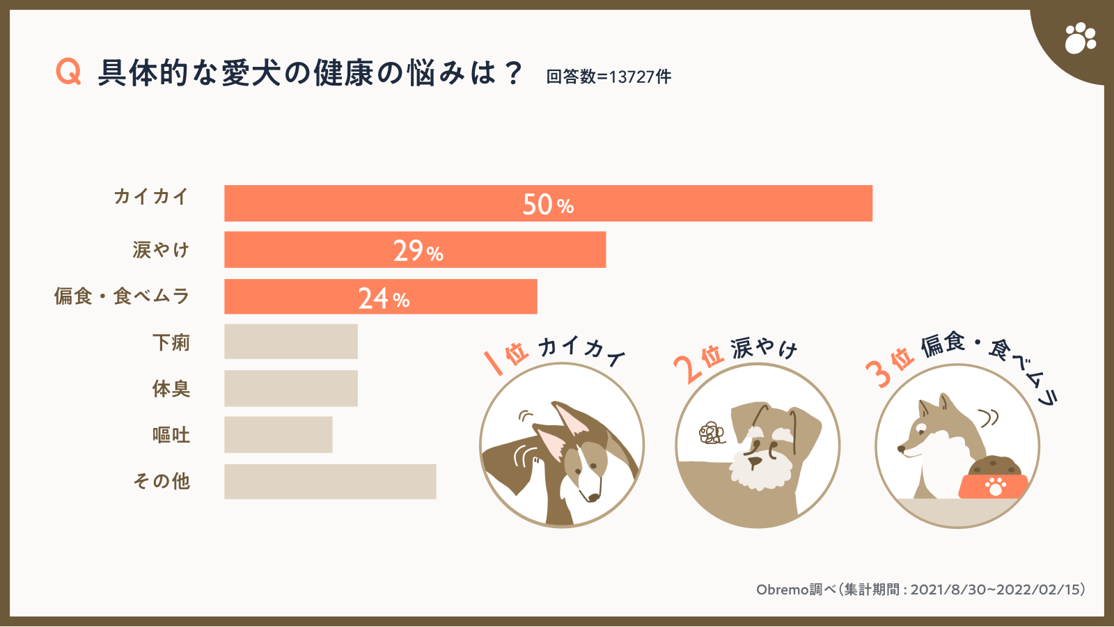 このような回答から、「健康の悩み」を抱えたワンちゃんが多くいます。
