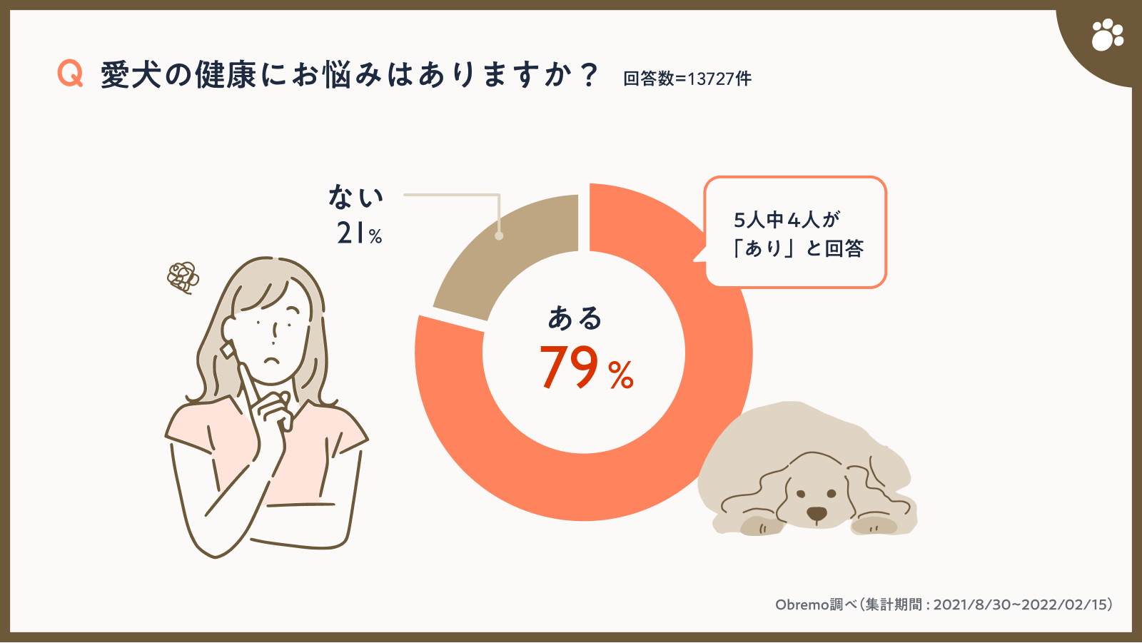 A.飼い主の約8割が愛犬の健康に悩みを抱えています。