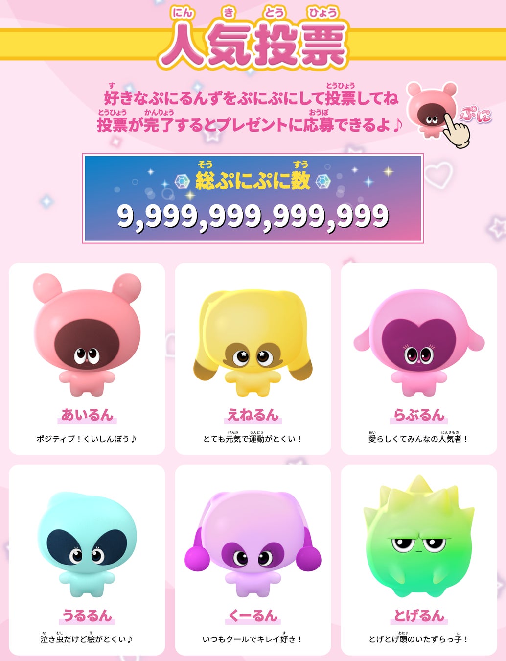 アニメに登場する個性豊かな“ぷにるんず”たちが勢揃い! 推しのぷにるんず“推しぷに”をぷにぷにして投票いただけます。