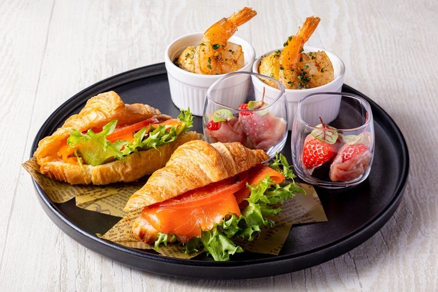 いちごのショートケーキやいちごのタルトなどの王道スイーツに加え、クリームチーズといちごを求肥で包み込んだ雪いちご、ほのかな苦みと香りがふんわりと広がる抹茶と合わせたいちごと抹茶のムース、濃い甘みを持つ、あまおうを含む2種のいちご食べ比べなど、いちご好きにはたまらないメニューを盛り込んだアフタヌーンティーに仕上げています。セイボリーにはサーモンとアボカドのクロワッサンサンド、アンチョビガーリックが香るシュリンプ&ポテト、程よい塩味の生ハムと甘いいちごを一緒に楽しめる生ハムいちごをご用意し、塩味と甘味の絶妙なバランスにもこだわりました。