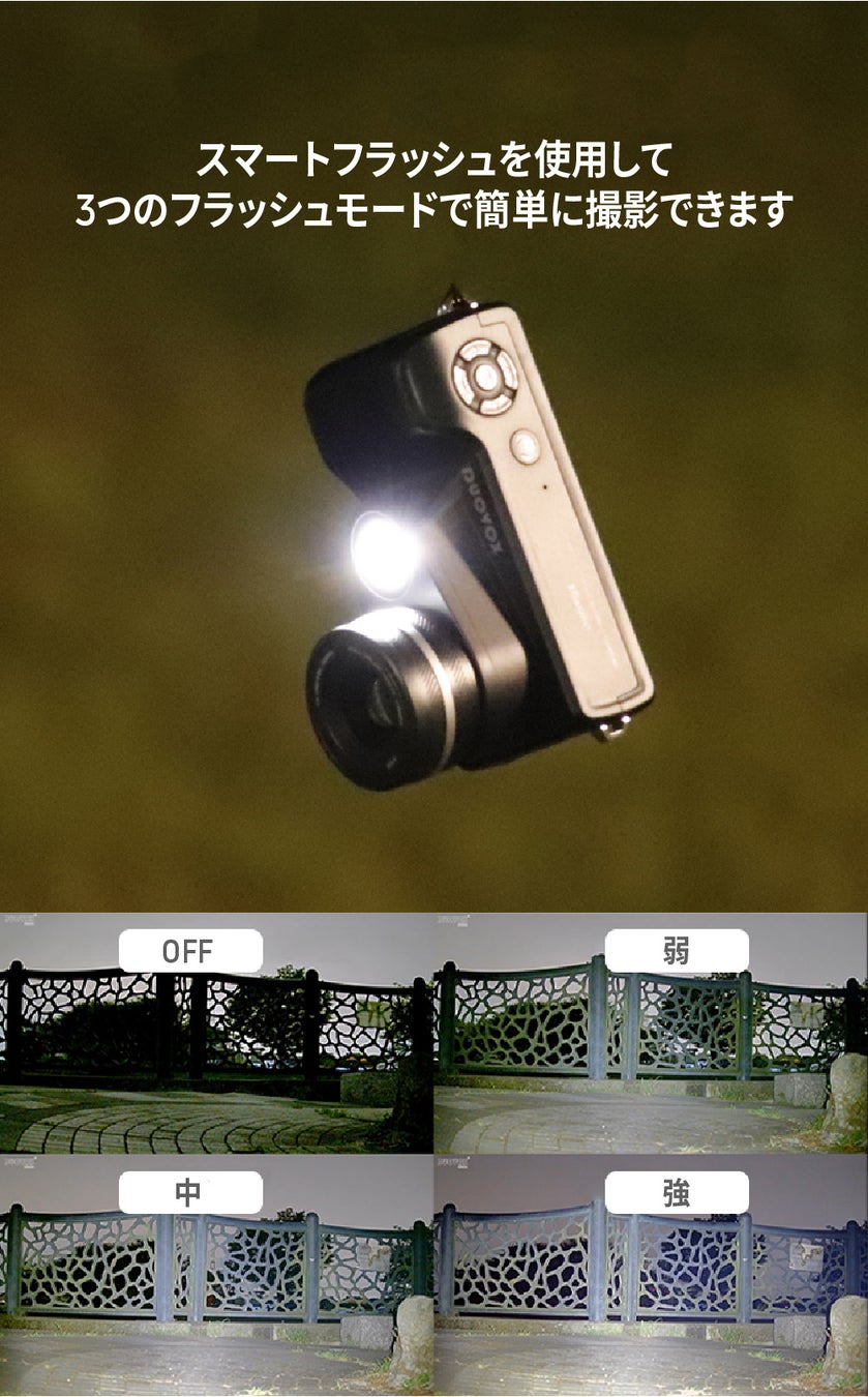 付属のスマートフラッシュを使用して、3つのフラッシュモードで簡単に撮影できます。