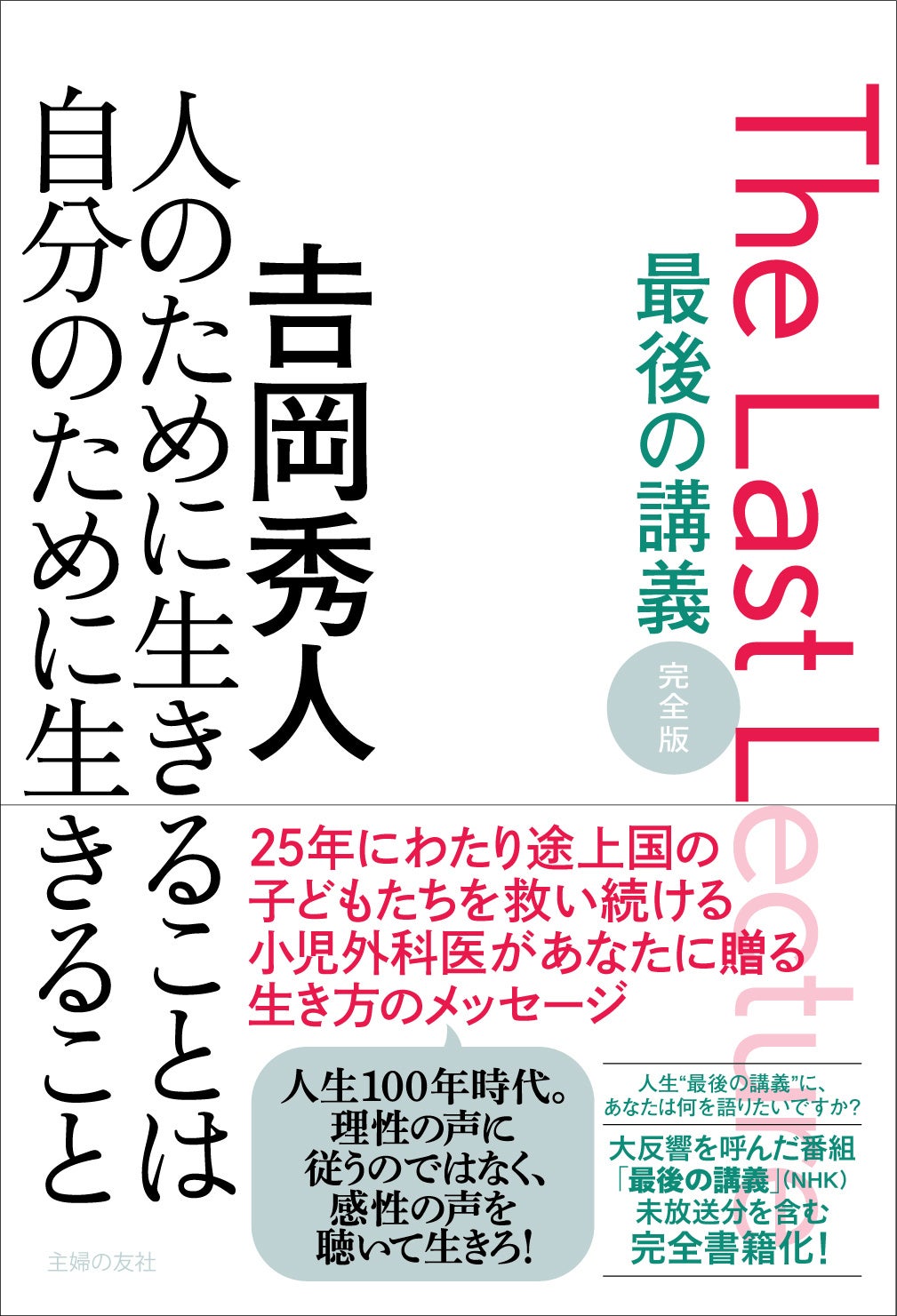 NHKで放送され、「勇気をもらった」「生き方を考え直した」と、大反響を呼んだ番組が、未収録分を加えた『最後の講義 完全版 𠮷岡秀人 人のために生きることは自分のために生きること』として1冊の本に