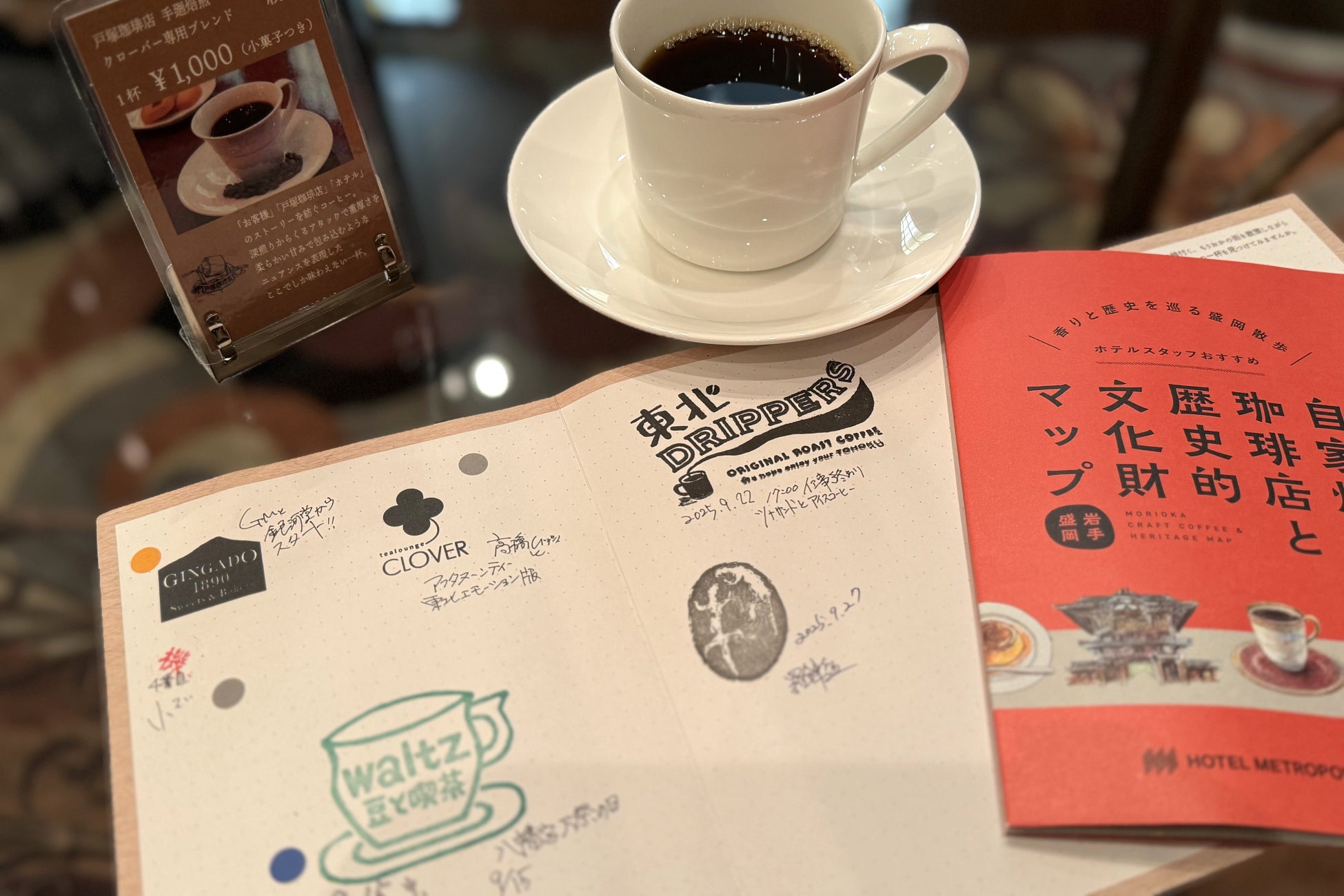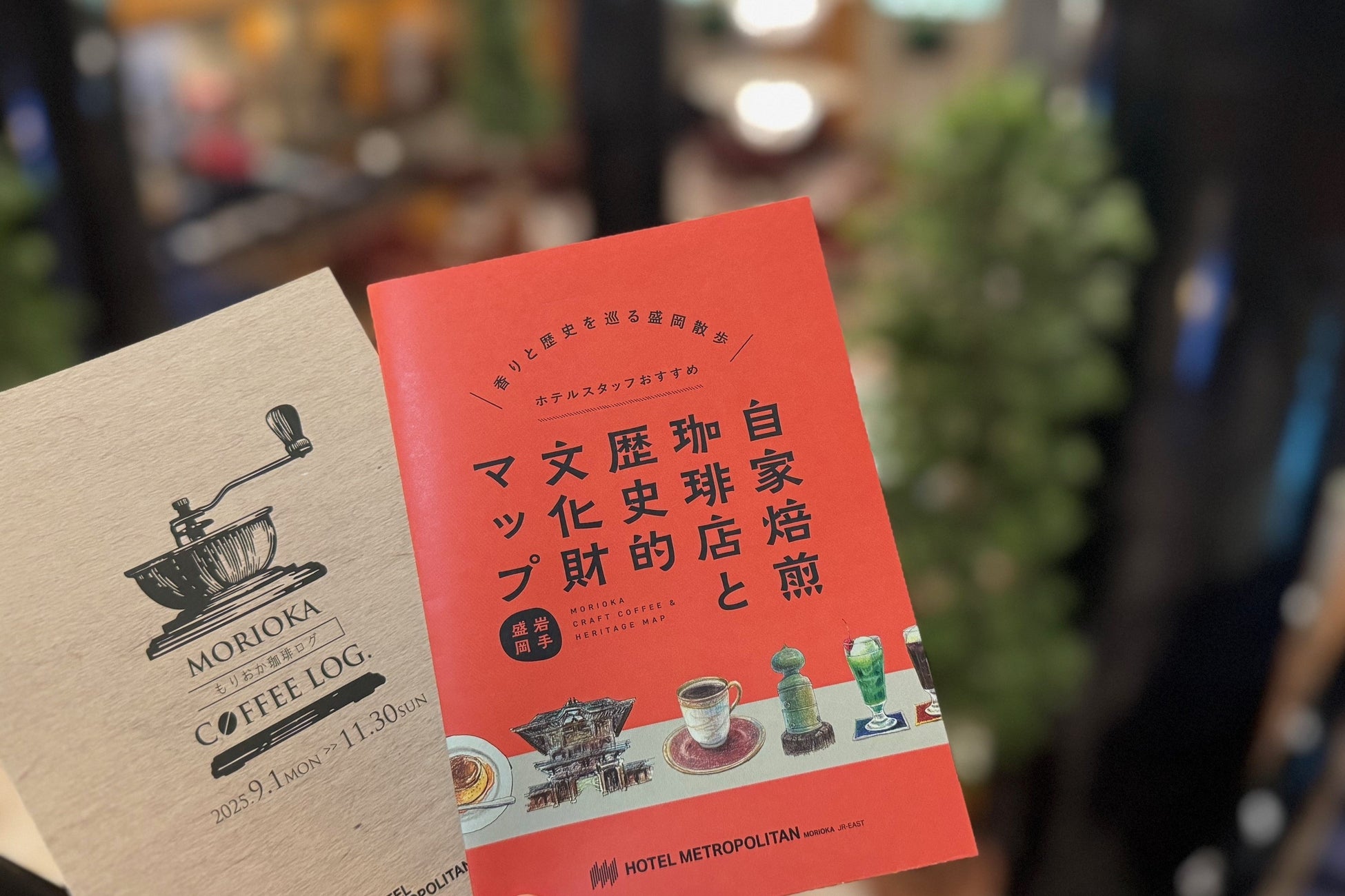 ホテルスタッフおすすめの珈琲店マップをもとに、盛岡市内にある個性豊かな自家焙煎珈琲店を巡り、来店したログ(記録)を集める「もりおか珈琲ログ」。ログを5個以上集めると、素敵なノベルティをプレゼント。もりおかに根付く珈琲と喫茶店文化を満喫しながら、もりおかの街の魅力に触れる企画となっております。