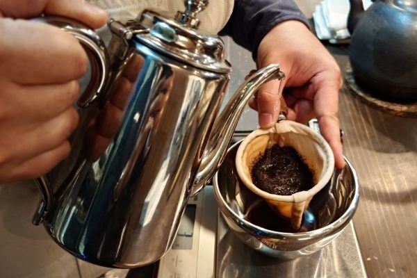 ③丁寧なプロの手仕事を体感/戸塚マスターのネルドリップ実演による1杯を堪能。(産地:ペルー)