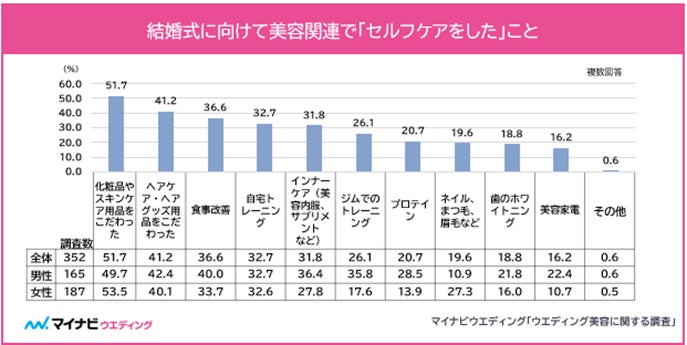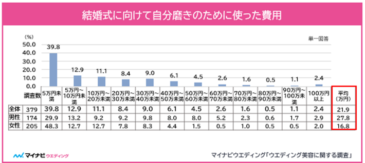 結婚式に向けて「自分磨き」はカップルで共有!美容への自己投資額は平均21.9万円で男性のほうが27.8万円と高額