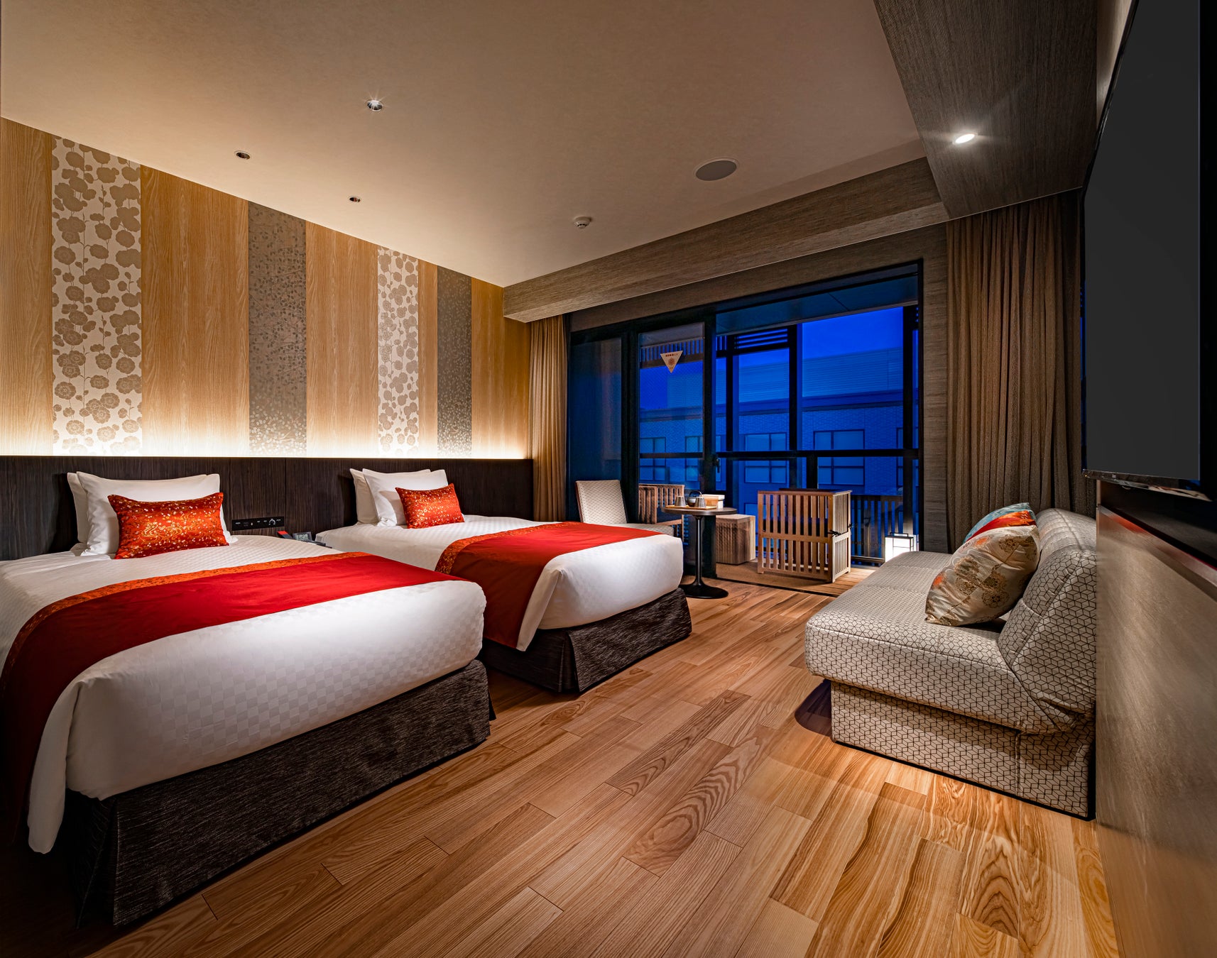 客室にはReFaのシャワーヘッドとドライヤー、京焼・清水焼の茶器セット、Hermèsのバスアメニティをご用意。プレミアムルームは、フローリングの室内に寛ぎをかなえるテラススペースを設けたツインルームです。また、三段お重「京の色彩箱」&和洋ビュッフェ朝食をはじめ、24時間のホテルステイをお楽しみいただけます。この機会にぜひリーガグラン京都にお越しください。