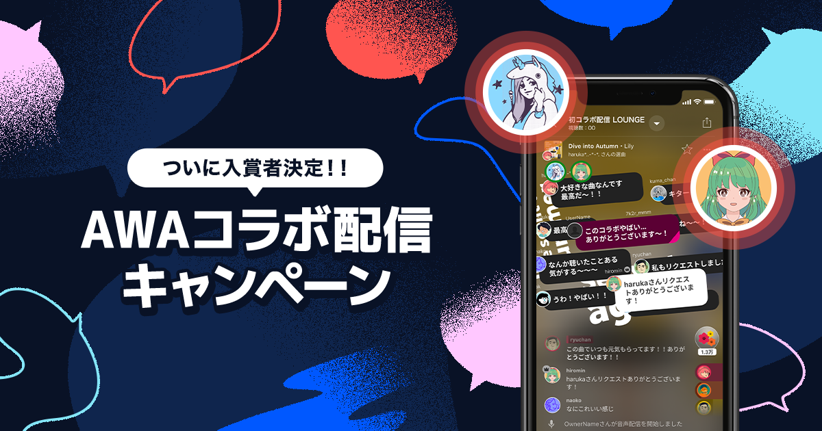 AWA株式会社(本社:東京都港区、代表取締役CEO:冨樫晃己)が運営する、サブスクリプション型(定額制)音楽ストリーミングサービス「AWA(アワ)」は、誰かとコラボレーションし複数人で行うLOUNGEを対象としたコラボ配信キャンペーンを7月15日~24日まで開催。Amazonギフト券が進呈される上位入賞チームとAWA特別賞が決定いたしました。