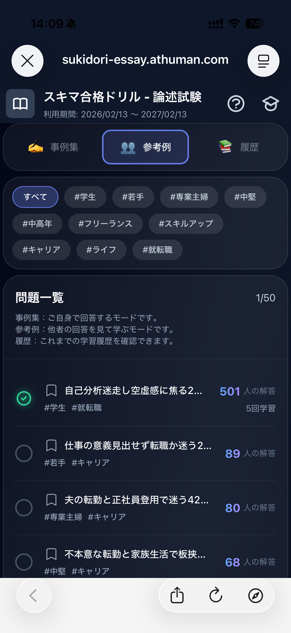 【スキマ時間で】他者回答閲覧モード:他者の視点や表現を学び、移動中や休憩中も効率的に学習。