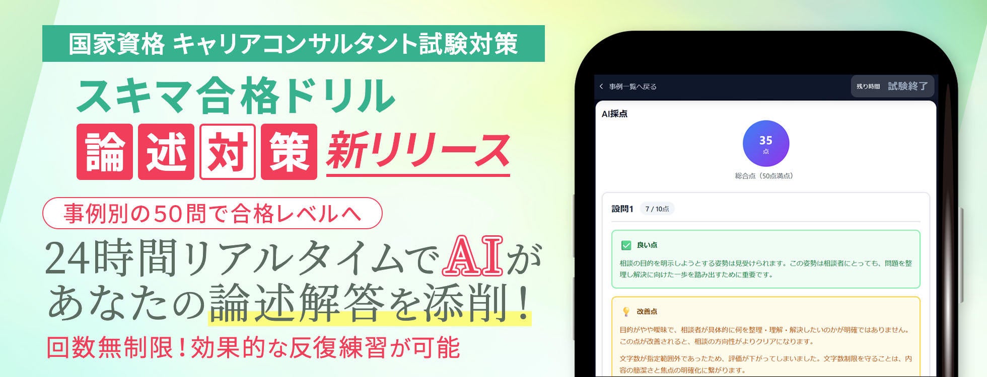 ~業界初の論述AI添削機能を提供~ 国家資格キャリアコンサルタント対策『スキマ合格ドリル』一般販売開始! ~最短ルートで合格!合格率向上・満足度90.7%の実績~
