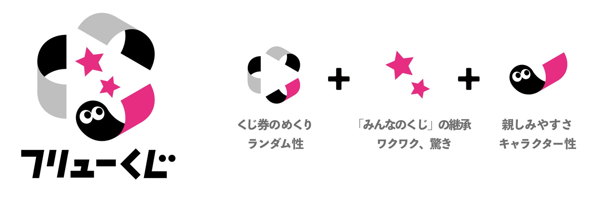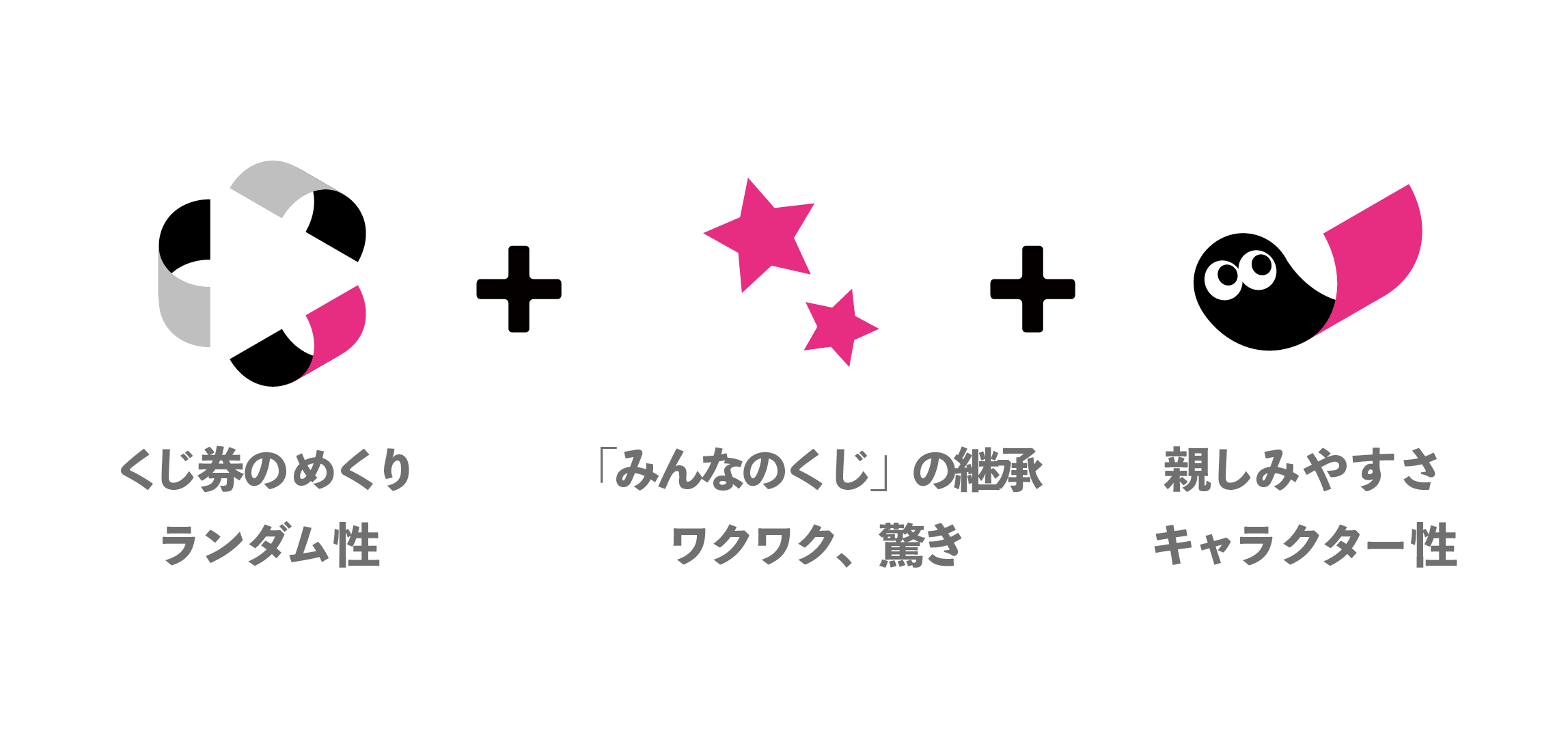 新しいロゴデザインは、くじ券をめくる瞬間の躍動感とくじのランダム性を表現した円形のモチーフをベースに、『みんなのくじ』から継承された星を中央に配置し、くじを引く時の“ワクワク感”を表現。キャラクター性や幅広い世代から好まれるピンク色をアクセントとして取り入れることで、親しみやすさを持ってほしいという想いを込めています。