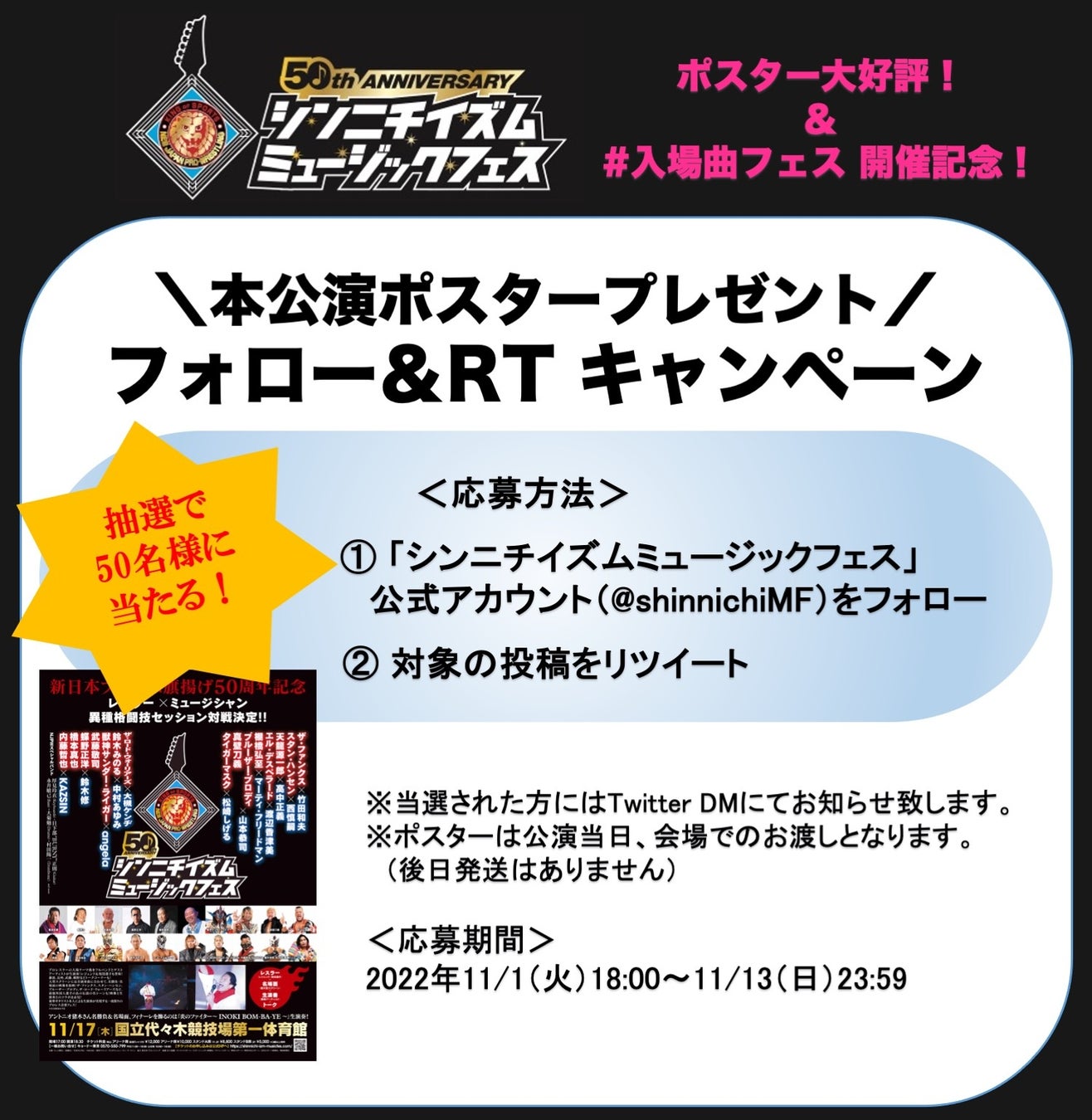 新日本プロレス50周年記念「シンニチイズム ミュージックフェス」本公演オリジナルポスタープレゼント企画!