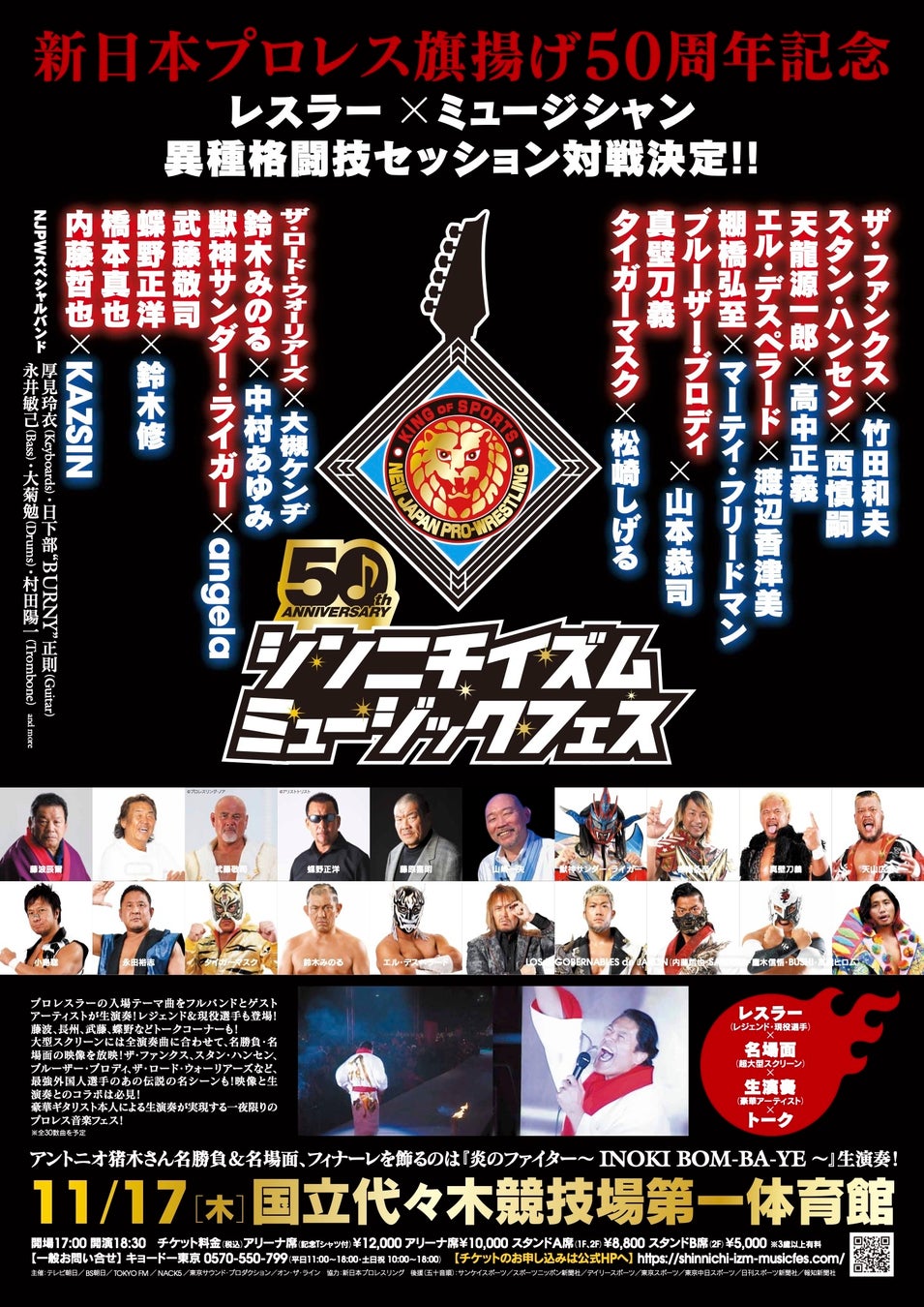 11月17日に東京・代々木競技場第一体育館で開催される、新日本プロレスの50周年を記念した一夜限りの音楽フェス「シンニチイズム ミュージックフェス」のオリジナルポスタープレゼント企画が実施されます。