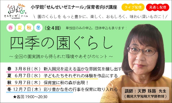 【小学館せんせいゼミナール】3月スタート!柴田愛子先生、天野珠路先生による、保育者向けオンライン講座のご案内!