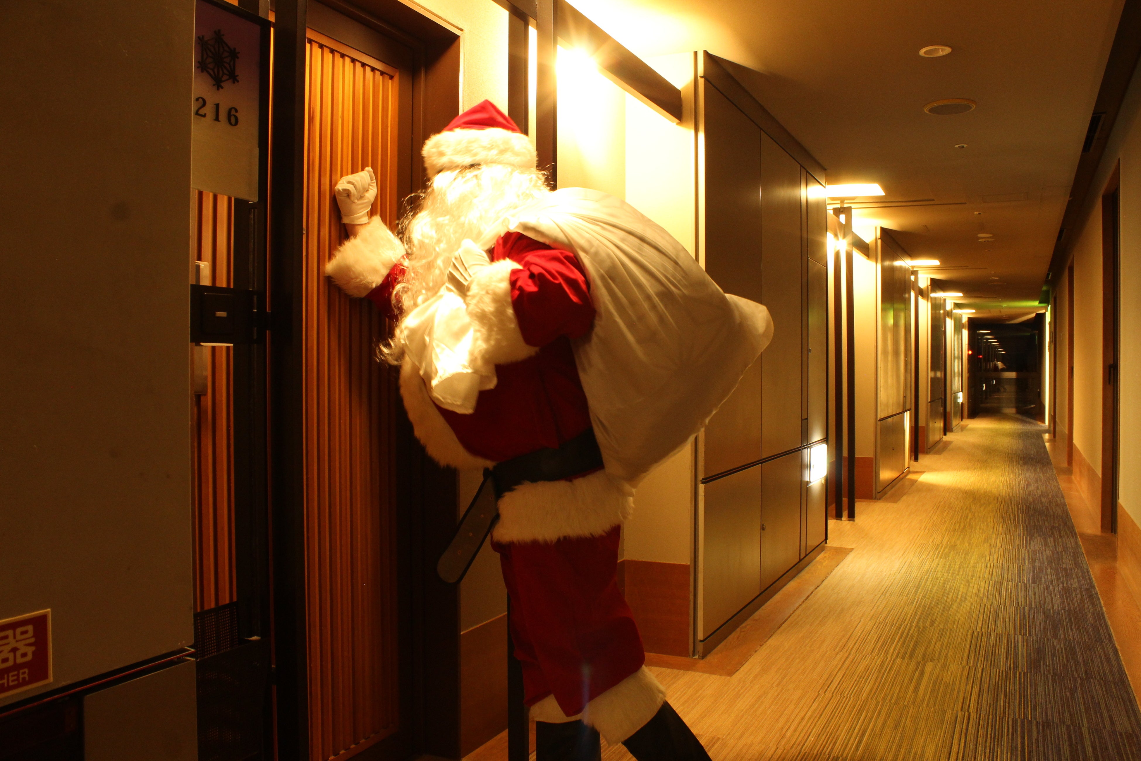 【箱根湯の花プリンスホテル】箱根の温泉宿にサンタクロース現る!湯の花サンタがプレゼントをお部屋へデリバリー