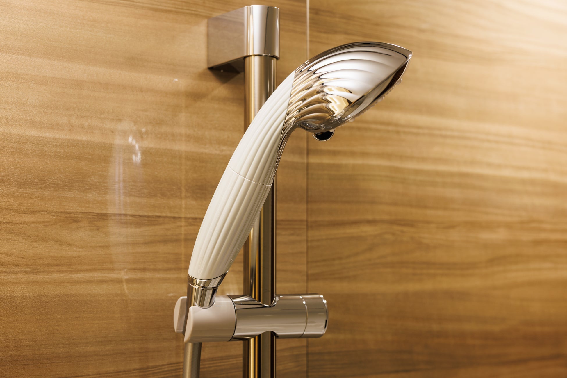 窓のある洗い場付きのバスルームには、レインシャワーとReFa FINE BUBBLE PURE(シャワーヘッド)、ReFa BEAUTECH DRYER PRO(ドライヤー)を備えております。