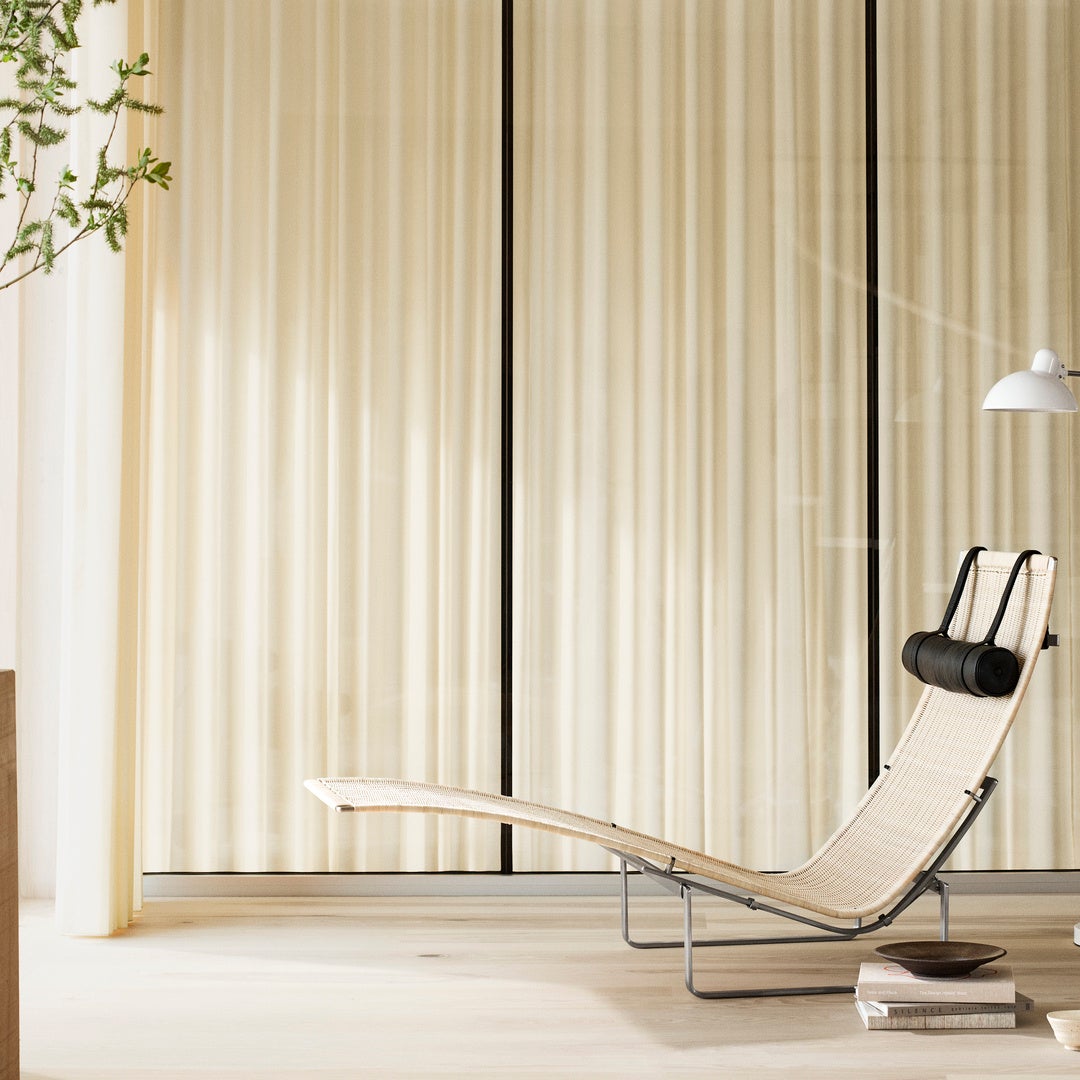完全にとどまることのない水の流れをイメージしてデザインされた、有機的に湾曲したデイベッドとしても使うことのできるラウンジチェア。