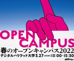 文部科学省認可の株式会社立の大学として、デジタルコンテンツと企画・コミュニケーションを学ぶデジタルコミュニケーション学部(4年制大学)と、理論と実務を架橋し新たなビジネスを生み出すデジタルコンテンツ研究科(専門職大学院)を設置しているデジタルハリウッド大学(所在地 東京・御茶ノ水、学長 杉山知之)は、2022年3月27日(日)に「春のオープンキャンパス2022」を開催いたします。