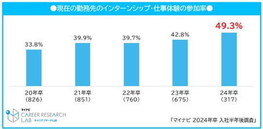 新社会人の2人に1人が勤務先のインターンシップ・仕事体験に参加。