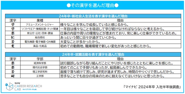 2024年卒の新社会人生活を表す漢字一文字、1位は「学」。「様々なことを学んで成長していると感じる」など前向きな意見