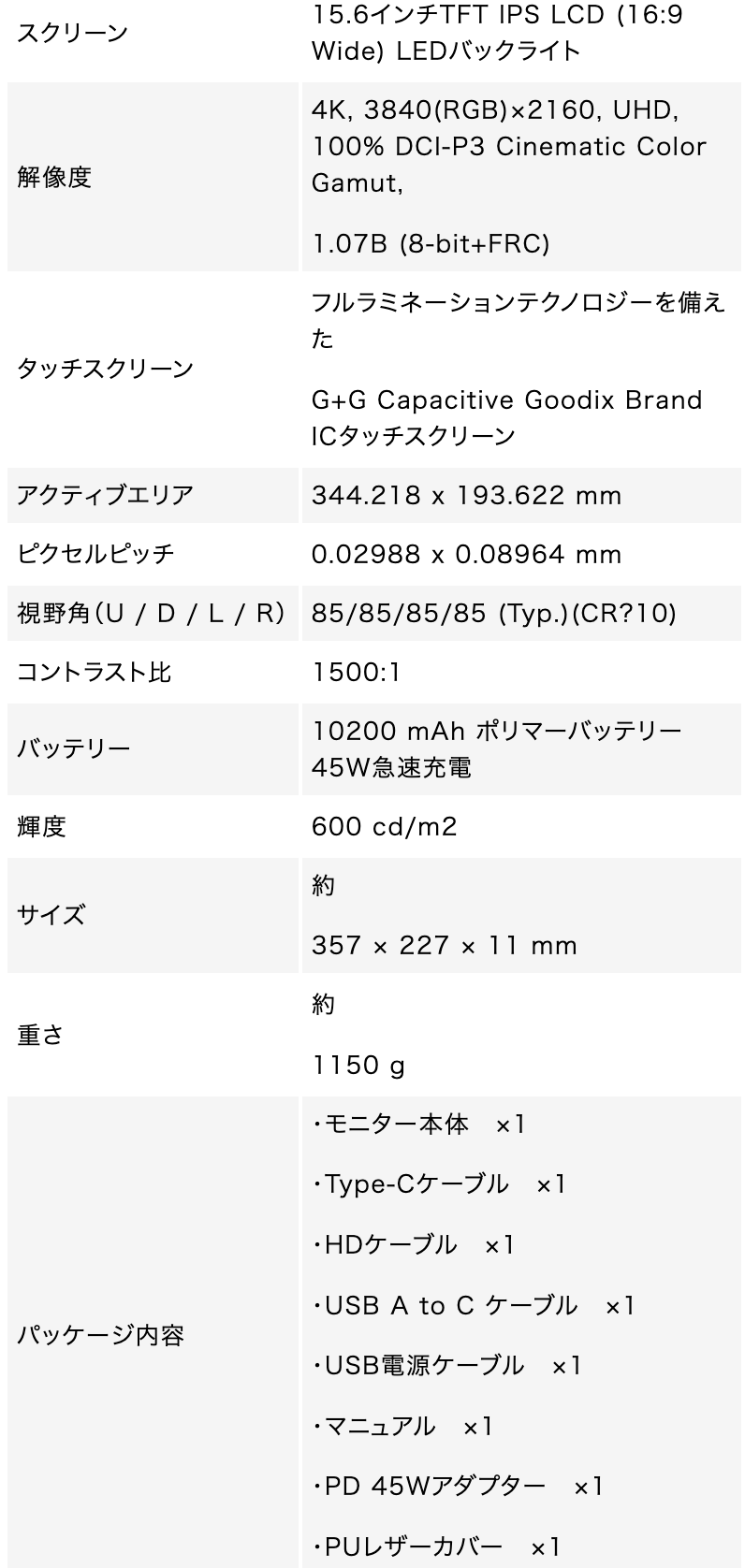 ●4K対応3840 x 2160ポータブルIPS液晶ディスプレイ
