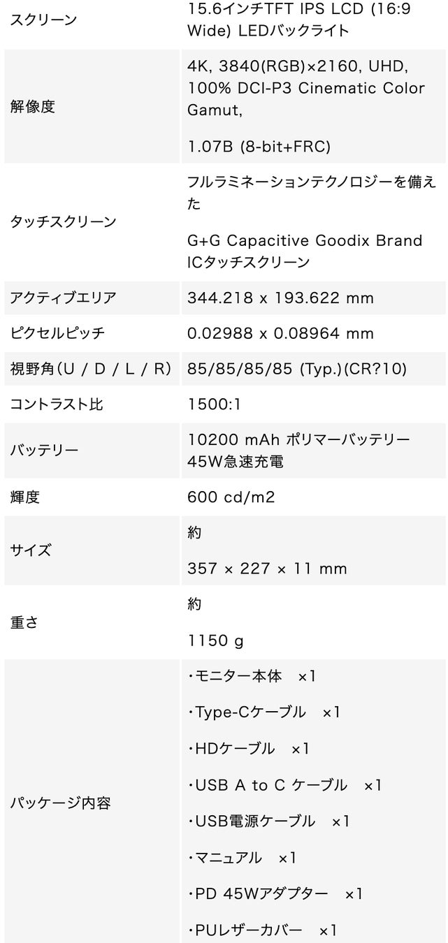 さらにハイスペックになって登場、15.6インチのポータブルモニター