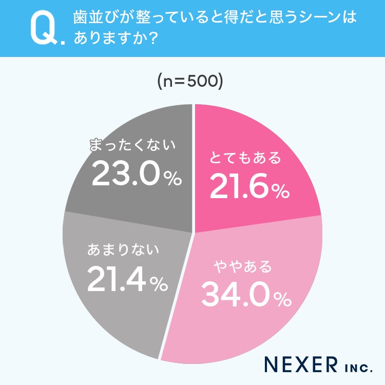 歯並びは笑顔の印象を大きく左右し、「人前で話す場面」「仕事」「恋愛」など幅広いシーンで評価に影響することも明らかになりました。