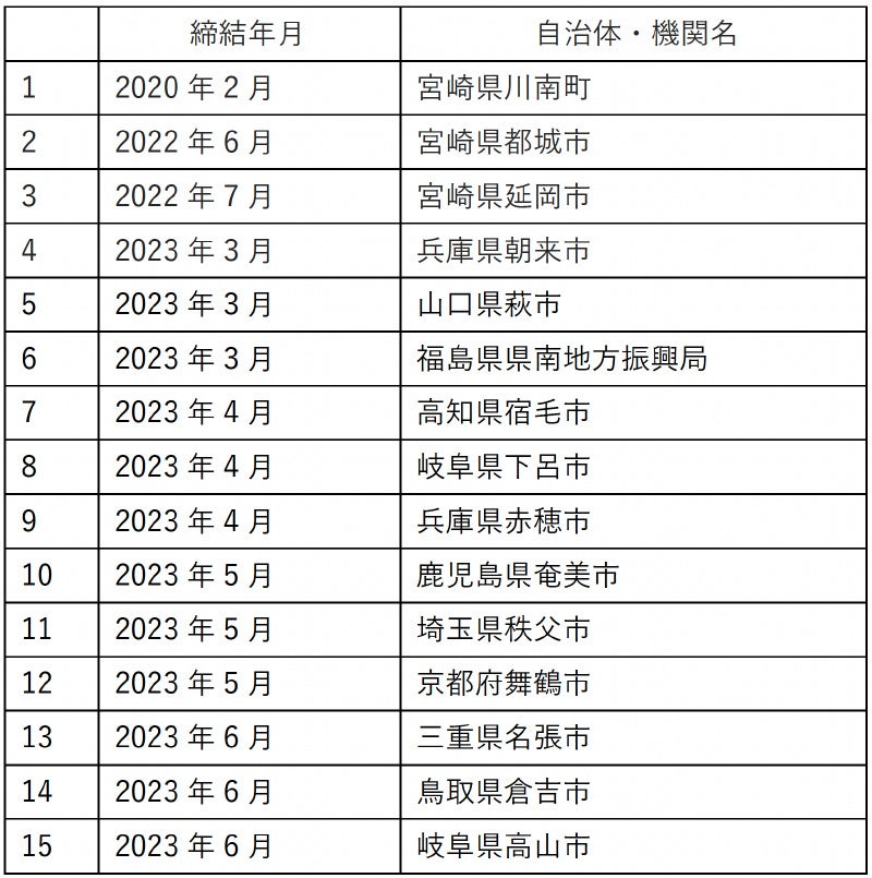3. これまでに協定締結した自治体・機関一覧