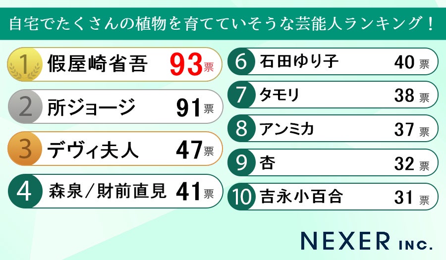 株式会社NEXER・自宅でたくさんの植物を育てていそうな芸能人に関する調査