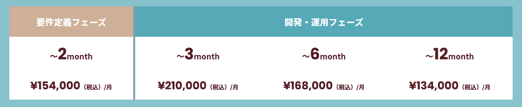 ※要件定義フェーズ以外の契約期間中はメンバーの変更が可能です。開発内容の変更、事業の性質等に対応いたします。