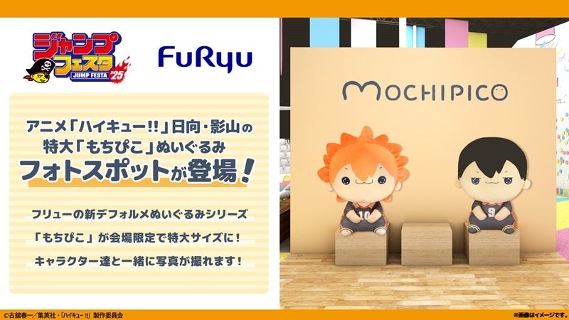 フリューのブースでは、『ぬーどるストッパーフィギュア』(通称:ぬースト)10周年を記念して、総勢64体のぬーストが一堂に会する特別展示を設置。また、アニメ『HUNTER×HUNTER』よりゴンのビッグサイズぬーストや、アニメ「ハイキュー!!」より日向・影山の超特大『もちぴこ』ぬいぐるみのフォトスポットをご用意しました。「ジャンプ」作品のキャラクターと一緒に撮影できる特別なブースに仕上がっています。