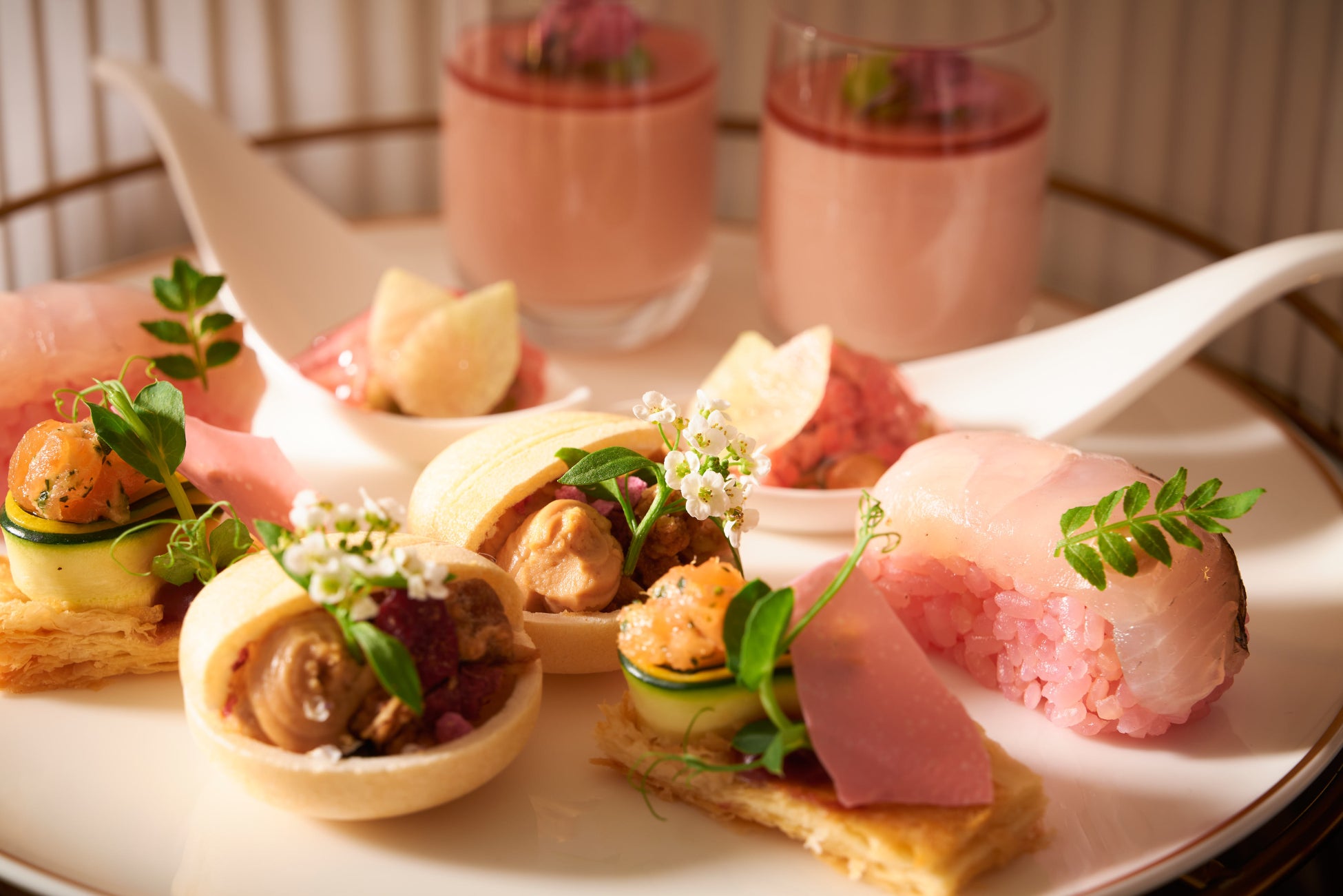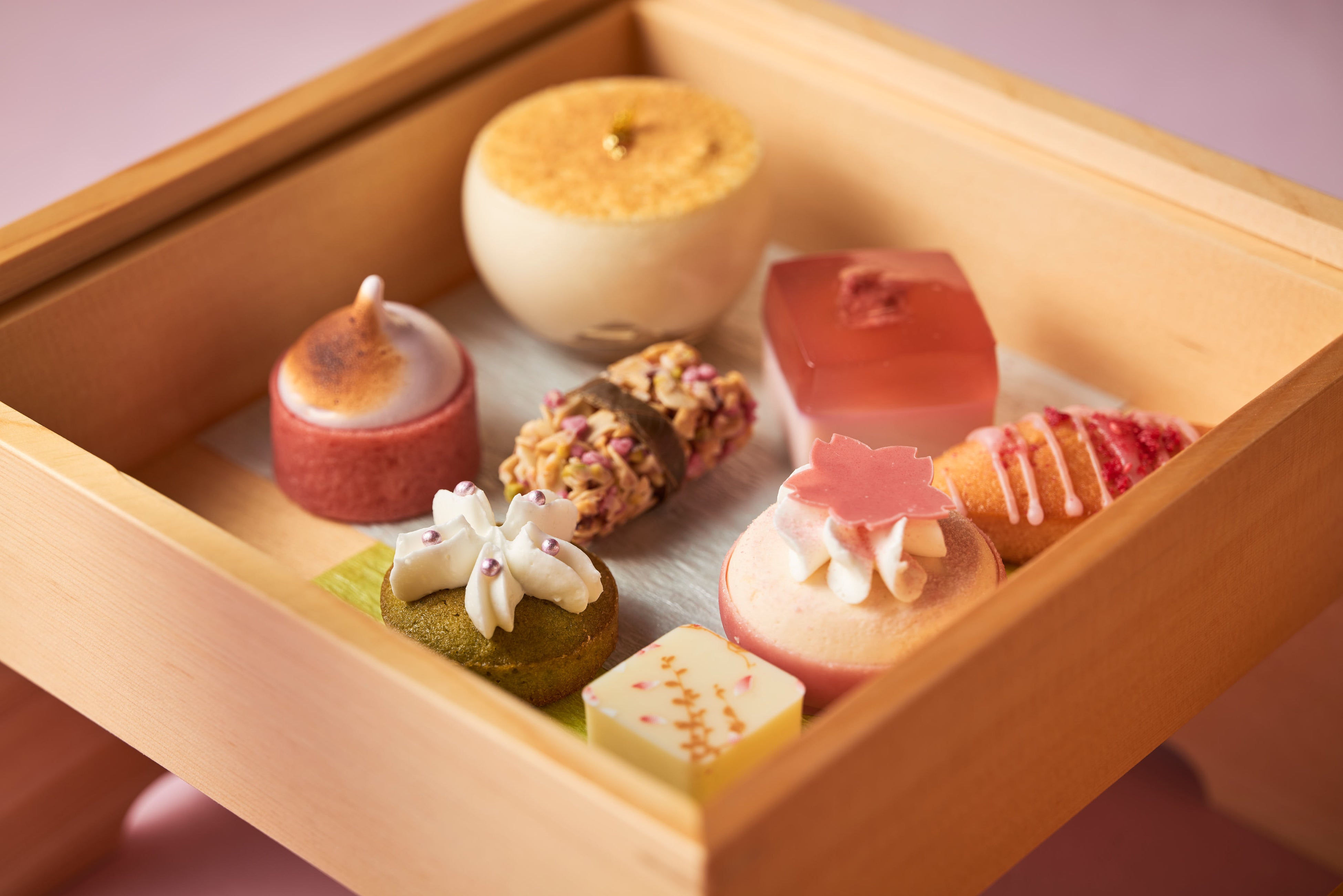 スイーツは、なめらかな桜ムースとサクサクのサブレが絶妙に調和した「桜ムース サブレショコラ」など、ふんわりと桜の香りを感じる4品をラインナップ。セイボリーには、桜の風味が引き立つ「旬の国産青豆と萬幻豚ベーコンのフランセーズ 桜コンソメ」など、春の味覚を贅沢に使用した5品をご提供します。