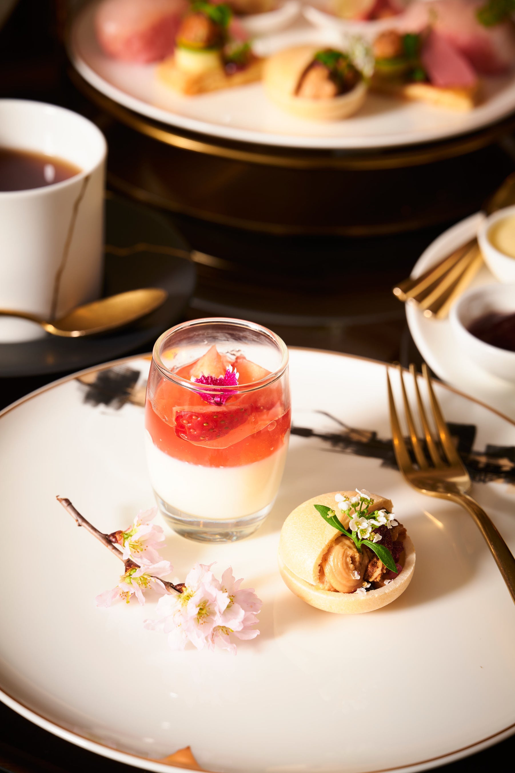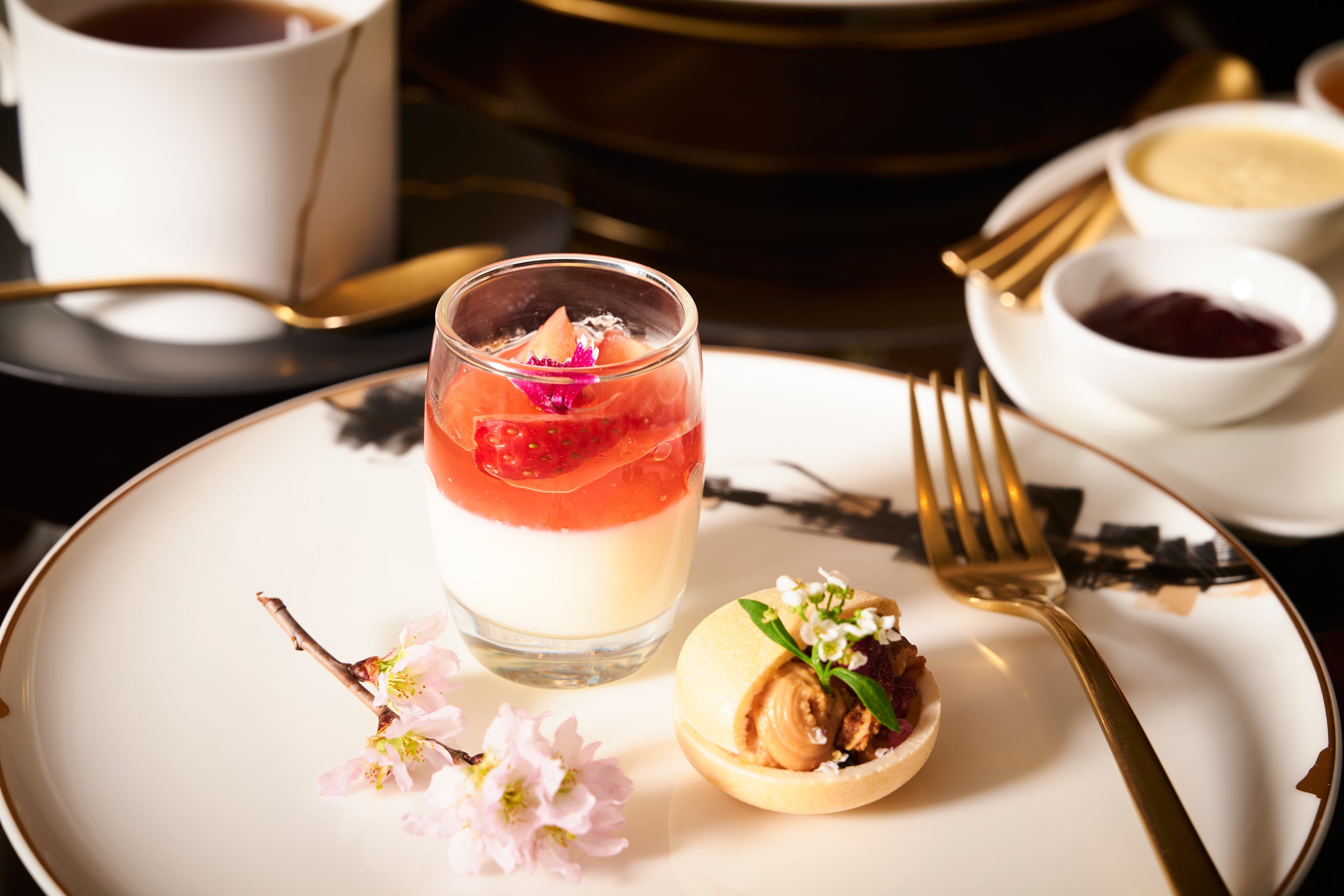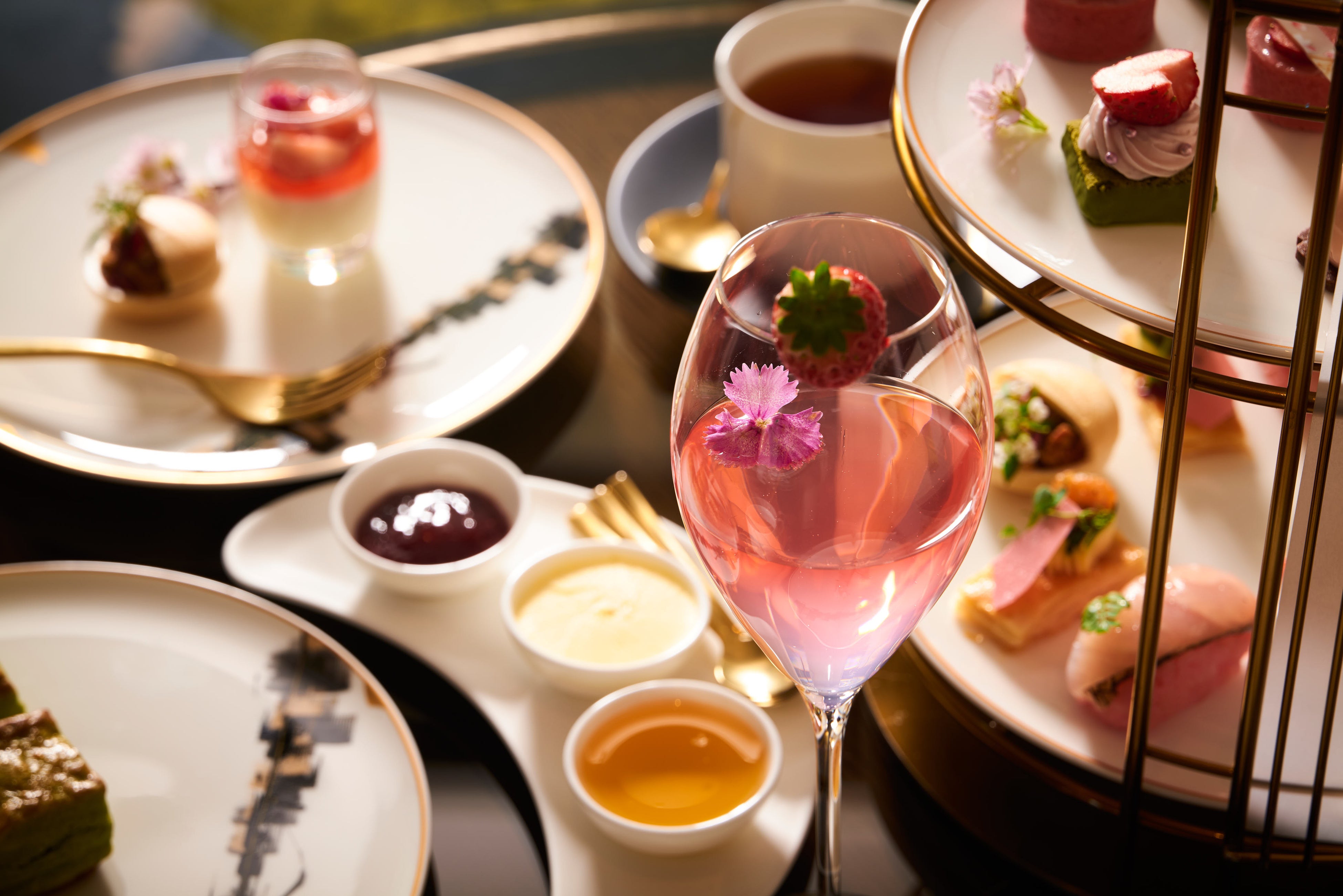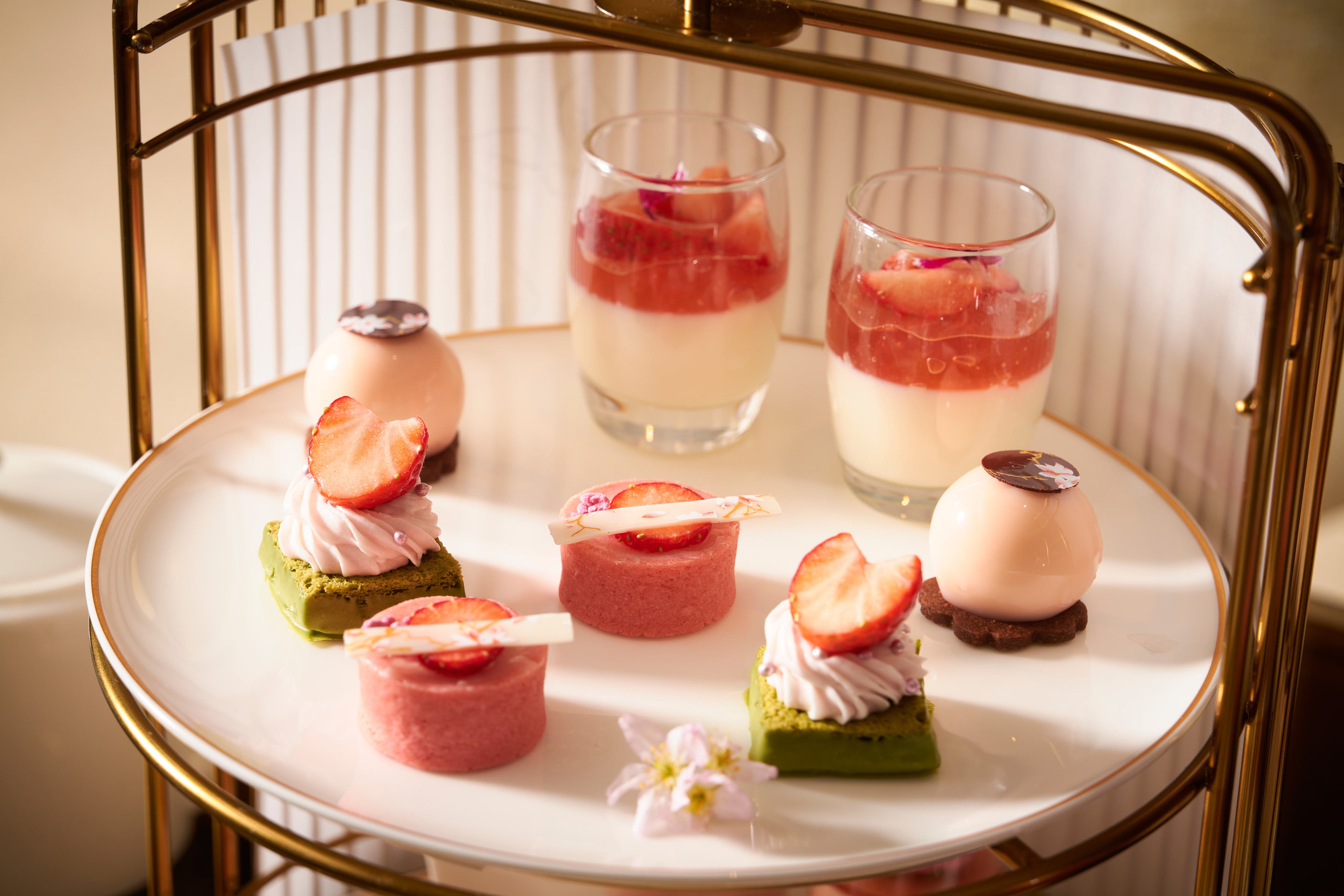 さらに、桜シロップとストロベリーティーを合わせたウェルカムドリンク「ピンクベリーブロッサム」や、土日・祝日限定の「桜プロフィットロールパフェ」もご用意しております。ロビーラウンジの居心地のよい空間で、春の訪れを感じる優雅なひとときをお過ごしください。