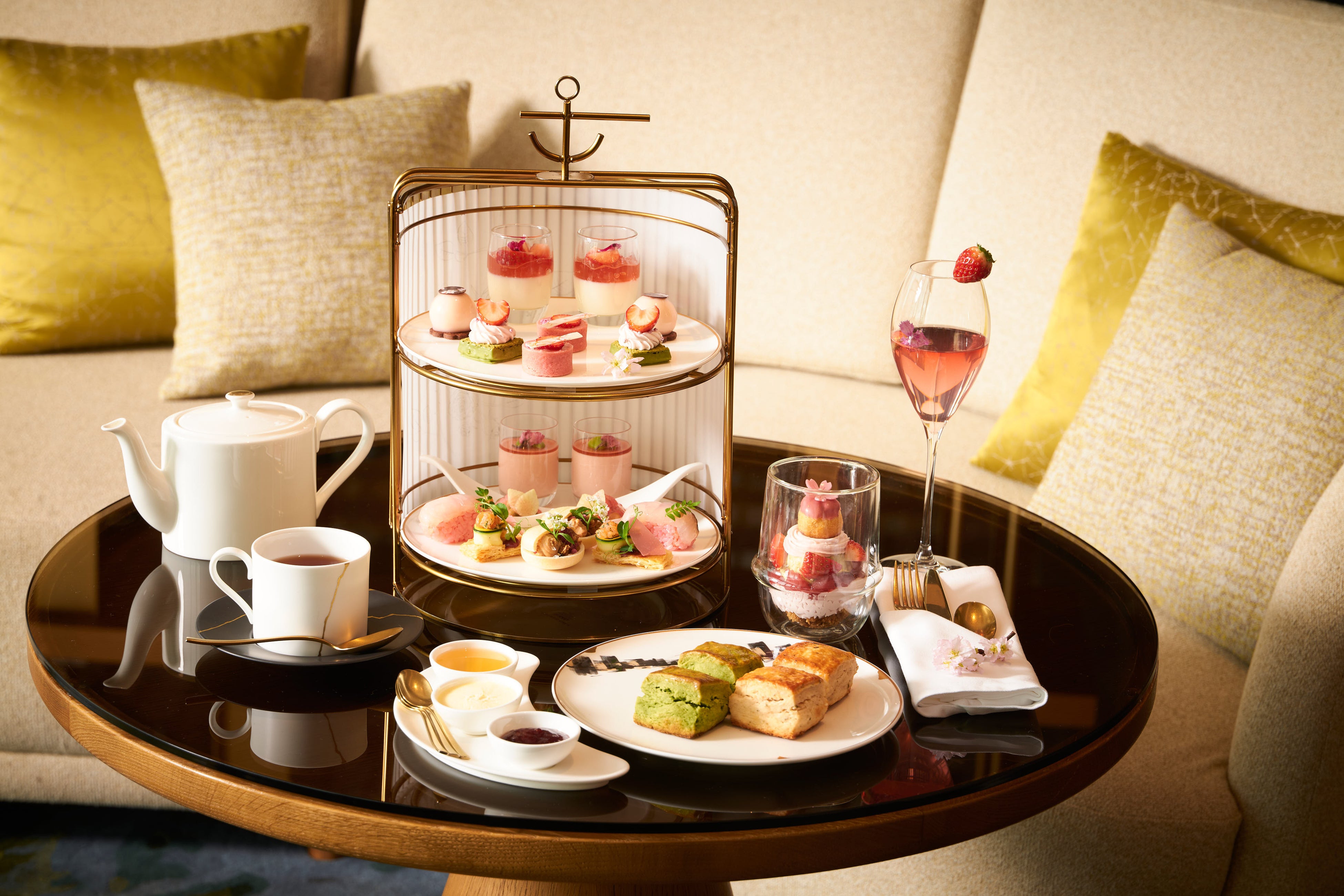 最上階23階から横浜の美景を望むことができるロビーラウンジでは、心躍る麗らかな季節にふさわしい「桜と苺のアフタヌーンティー」をご用意しております。ほんのり桜色に染まった華やかなメニューが、特別なティータイムを演出します。