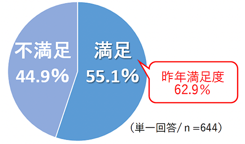 昨年に引き続き、高校生約640名を対象に1カ月にもらっているお小遣いの金額を聞いたところ、2023年の平均金額は「4,950円」になりました。昨年は、5,582円だったことから、632円ダウンという結果に。また、満足の割合についても昨年は「満足」と回答した人が62.9%だったのに対し、今年は55.1%にとどまり、金額、満足度ともに下降傾向にあります。